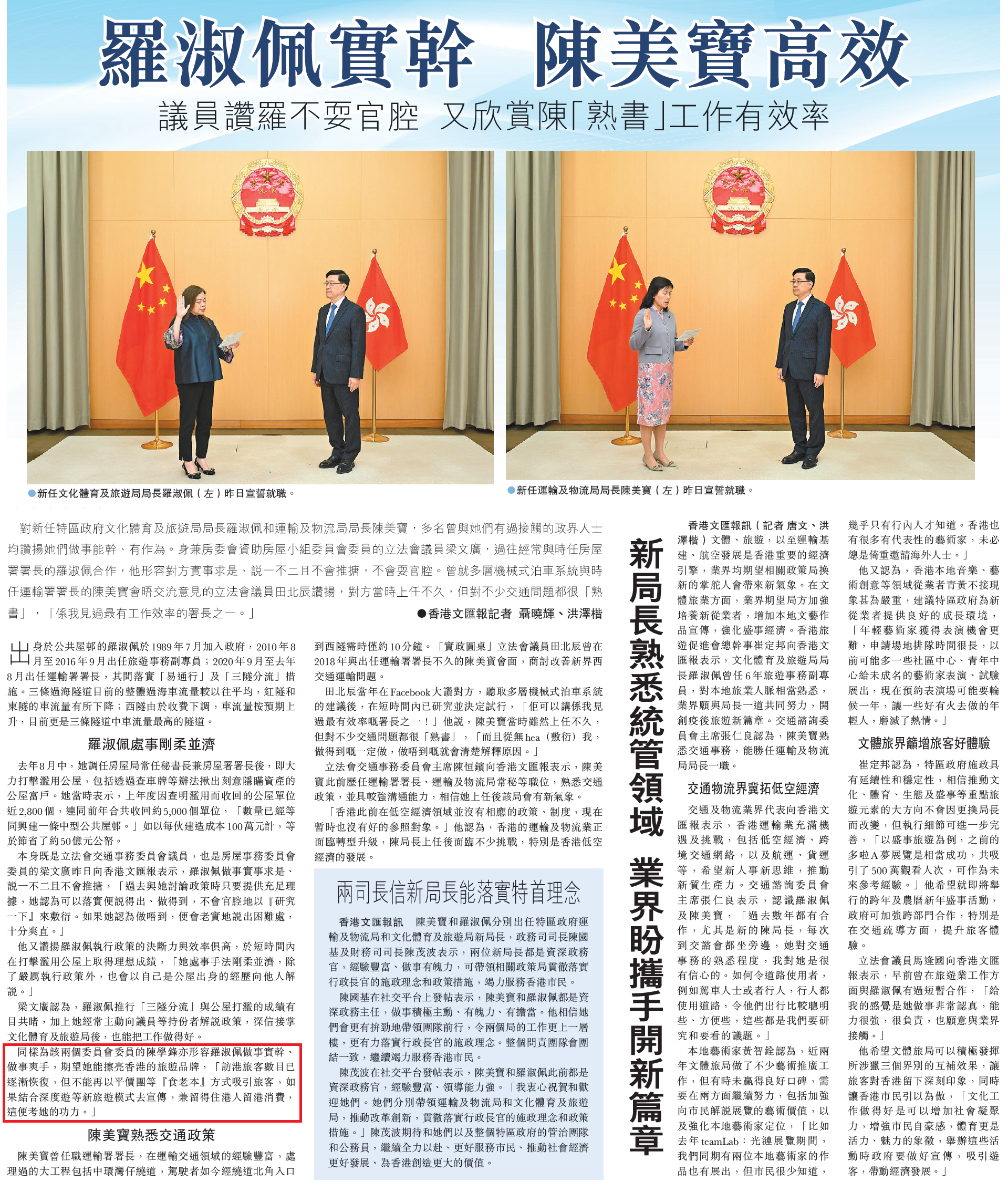 同樣為該兩個委員會委員的陳學鋒亦形容羅淑佩做事實幹、做事爽手,期望她能擦亮香港的旅遊品牌,「訪港旅客數目已逐漸恢復,但不能再以平價團等『食老本』方式吸引旅客,如果結合深度遊等新旅遊模式去宣傳,兼留得住港人留港消費,這便考她的功力。」