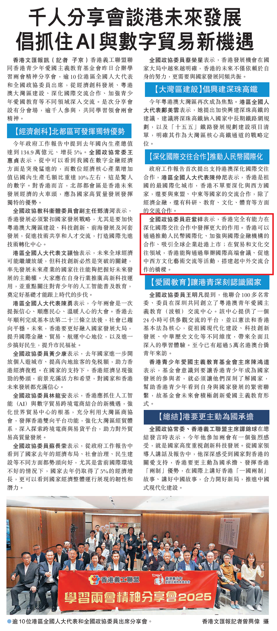 全國政協委員莊紫祥表示,香港完全有能力在深化國際交往合作中發揮更大的作用。香港可以通過推動人民幣國際化、加強與國際金融機構的合作、吸引全球企業赴港上市;在貿易和文化交往領域,香港能夠通過舉辦國際高端會議、促進中西方文化藝術交流等活動,搭建起中外交流合作的橋樑。