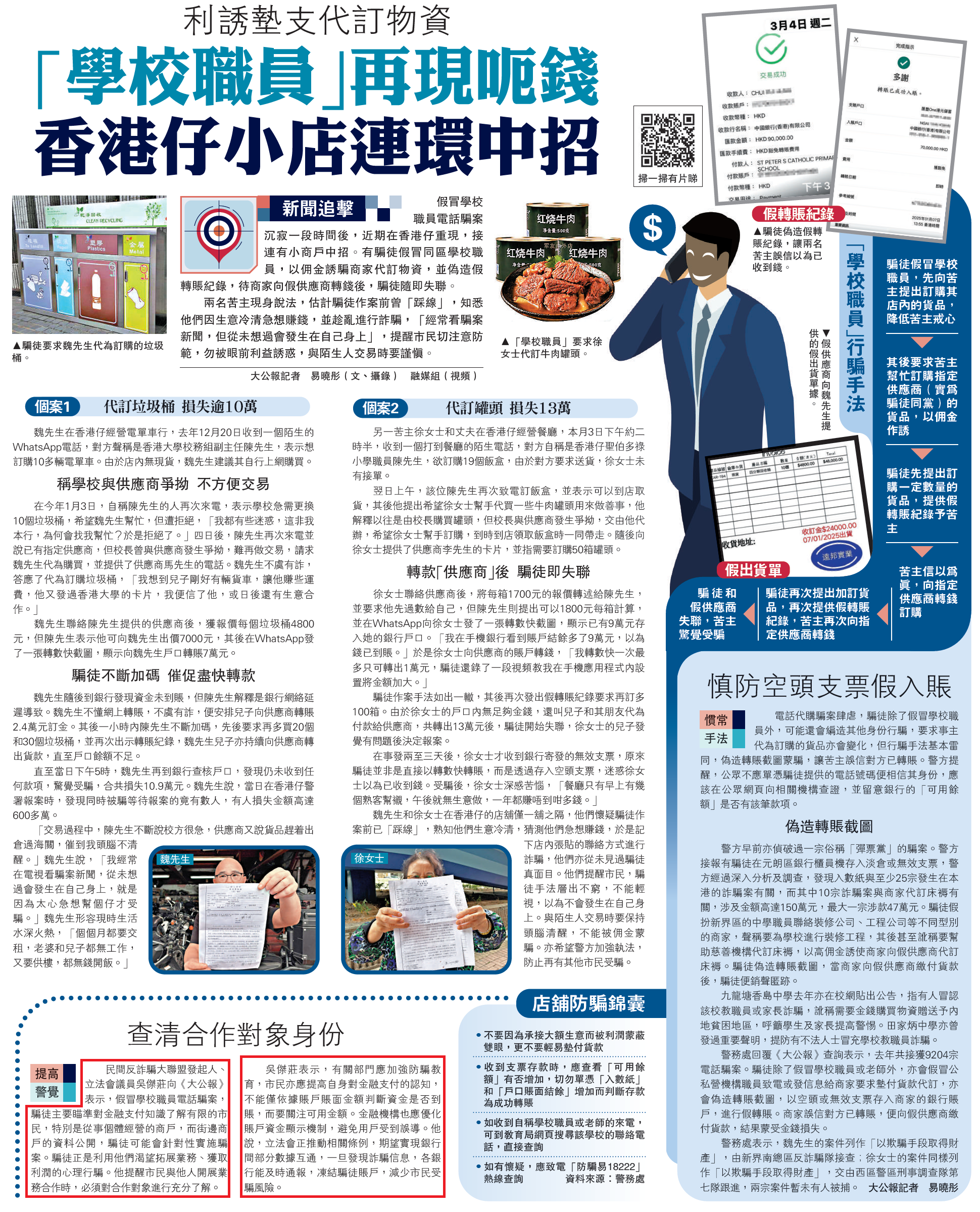 民間反詐騙大聯盟發起人、立法會議員吳傑莊向《大公報》表示,假冒學校職員電話騙案,騙徒主要瞄準對金融支付知識了解有限的市民,特別是從事個體經營的商戶,而街邊商戶的資料公開,騙徒可能會針對性實施騙案。騙徒正是利用他們渴望拓展業務、獲取利潤的心理行騙。他提醒市民與他人開展業務合作時,必須對合作對象進行充分了解。