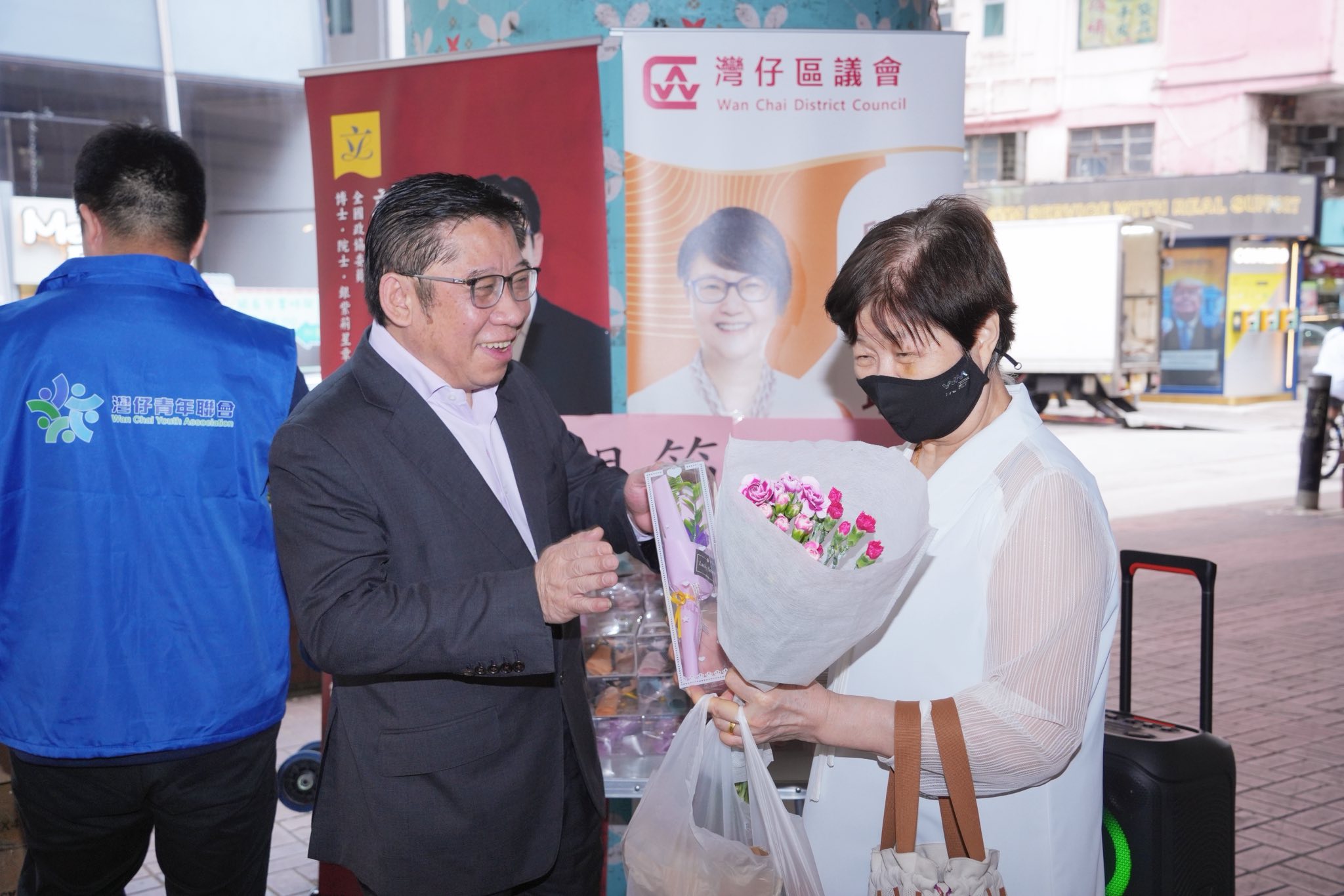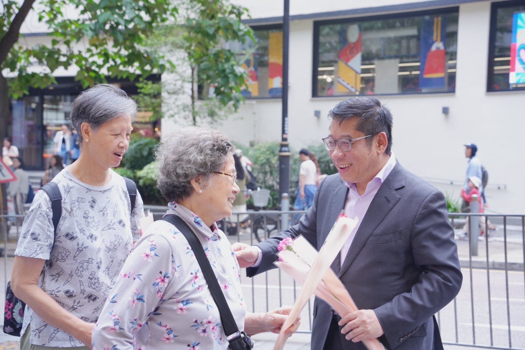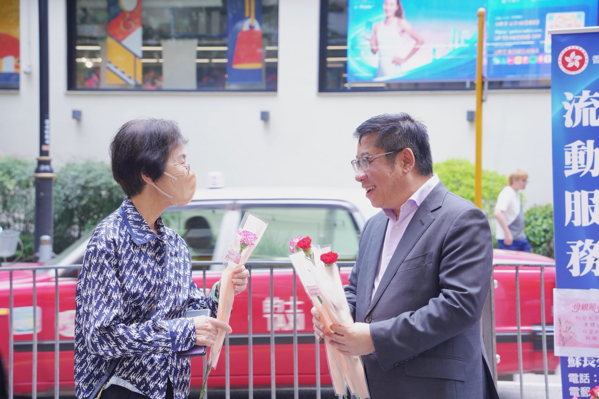母親節前夕(5月10日),本會理事長蘇長榮以立法會議員身份聯同本會副理事長、灣仔區區議員劉珮珊及中西區區議員邱松慶分別於灣仔區、中西區街頭為街坊送上鮮花驚喜。蘇長榮理事長表示希望用花香傳遞心意,承載對天下母親的衷心祝福。