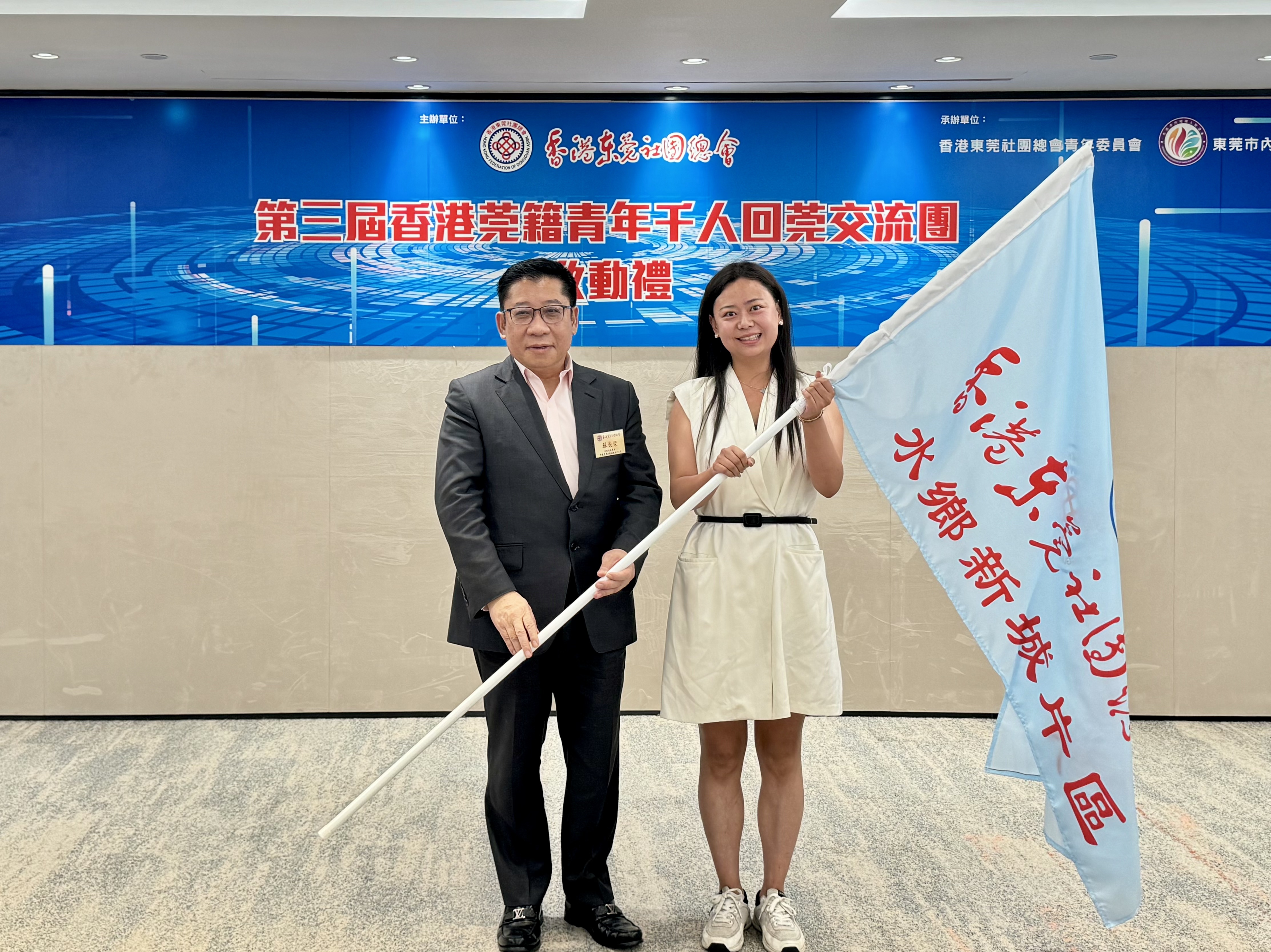 昨日(5月22日),香港東莞社團總會假尖東南洋中心舉行「第五屆第一次常務理事會議」 暨 「直屬義工隊成立儀式及青委會千人交流團啟動禮」,本會理事長蘇長榮以香港東莞社團總會執行主席身份應邀出席,並於「第三屆香港莞藉青年千人回莞交流團啟動禮」中為此次交流團水鄉新城片區的交流團長授旗。