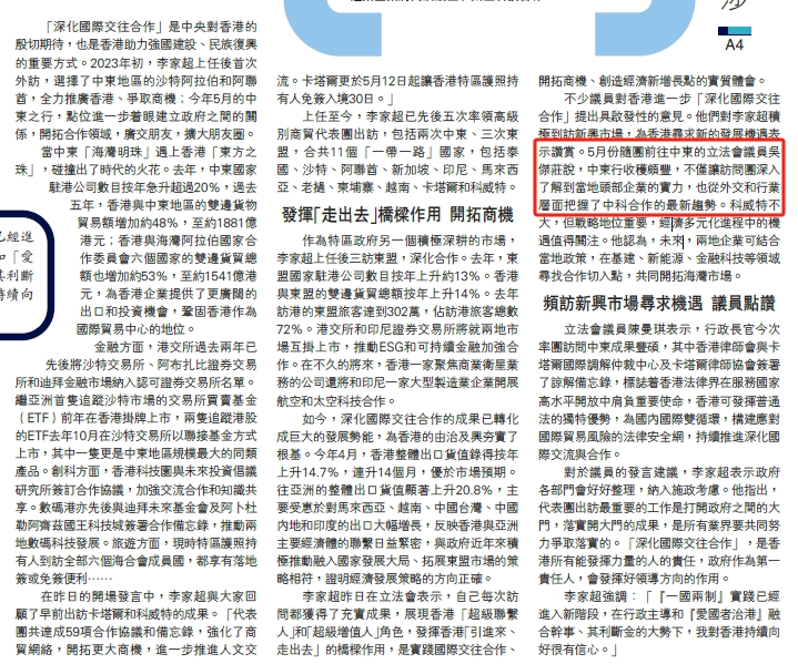 5月份隨團前往中東的立法會議員吳傑莊說,中東行收穫頗豐,不僅讓訪問團深入了解到當地頭部企業的實力,也從外交和行業層面把握了中科合作的最新趨勢。