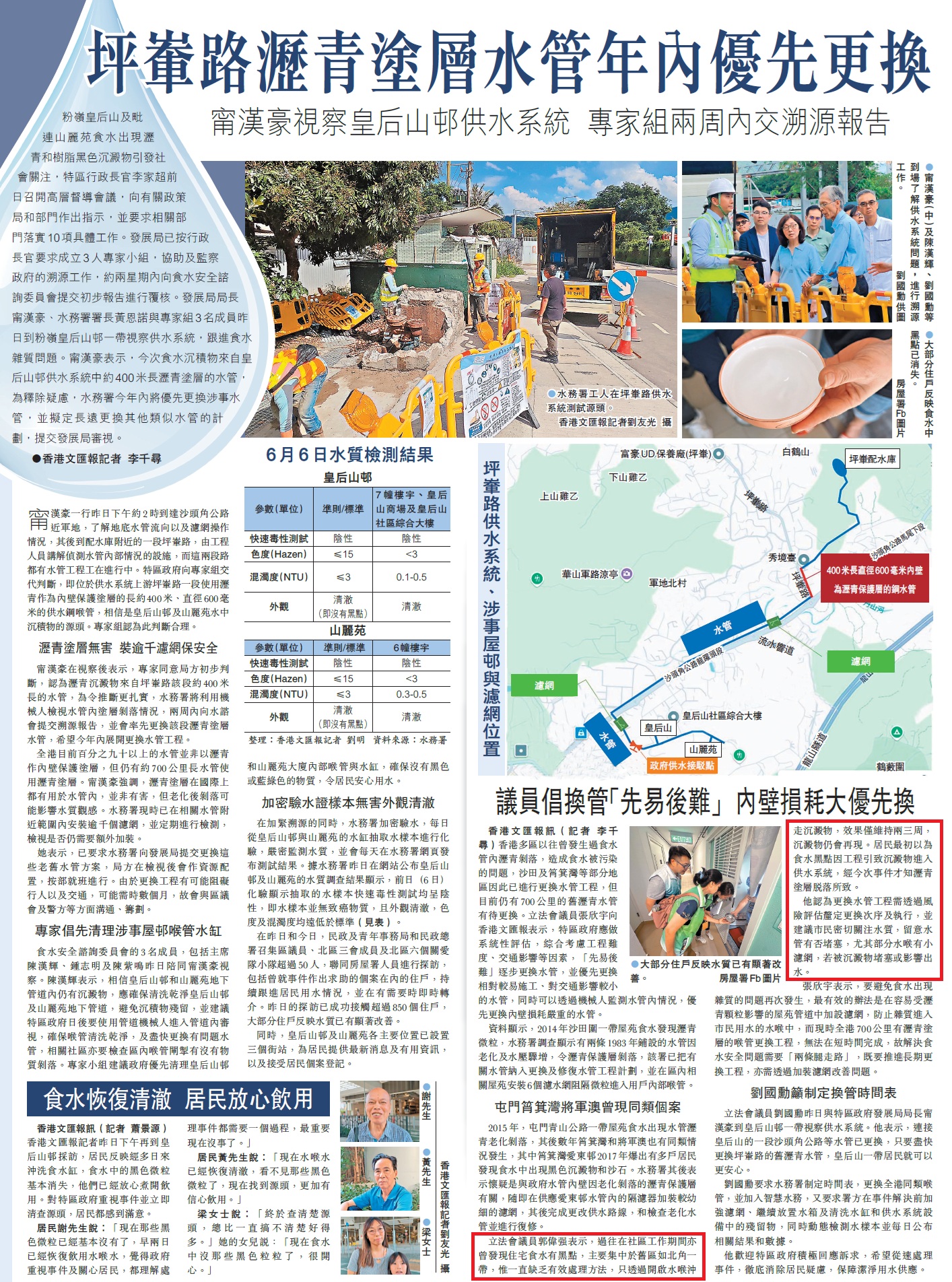 他認為更換水管工程需透過風險評估釐定更換次序及執行,並建議市民密切關注水質,留意水管有否堵塞,尤其部分水喉有小濾網,若被沉澱物堵塞或影響出水。