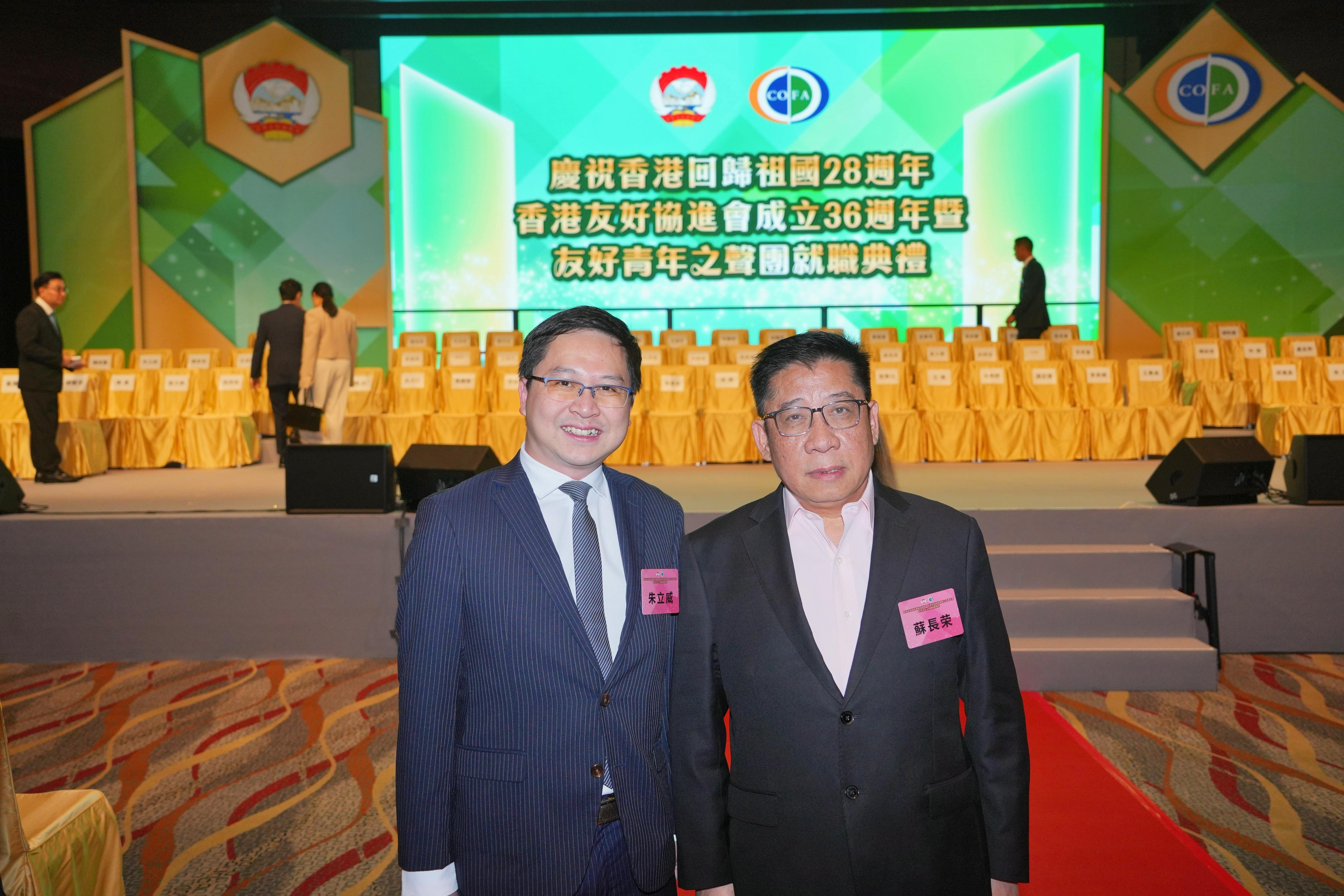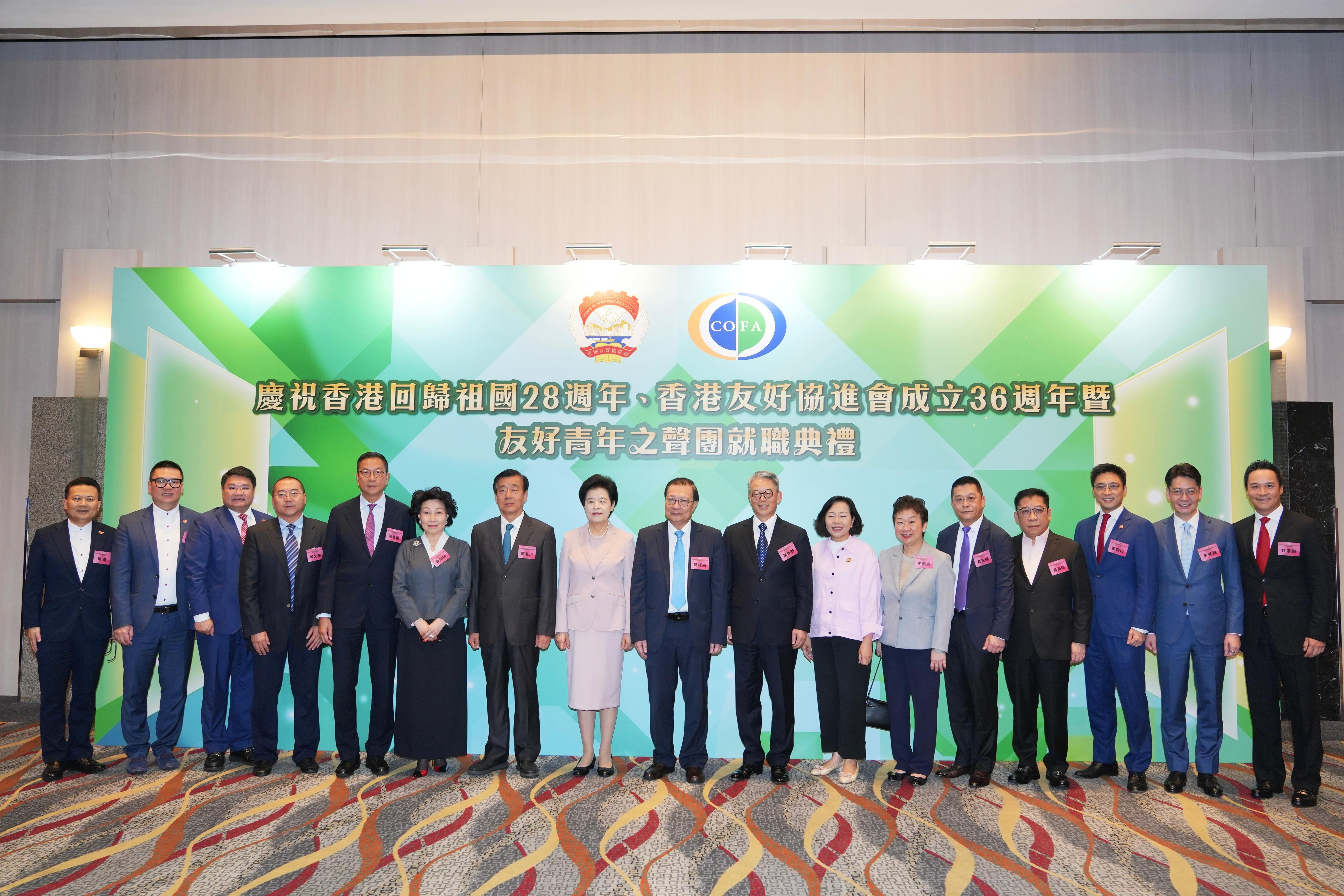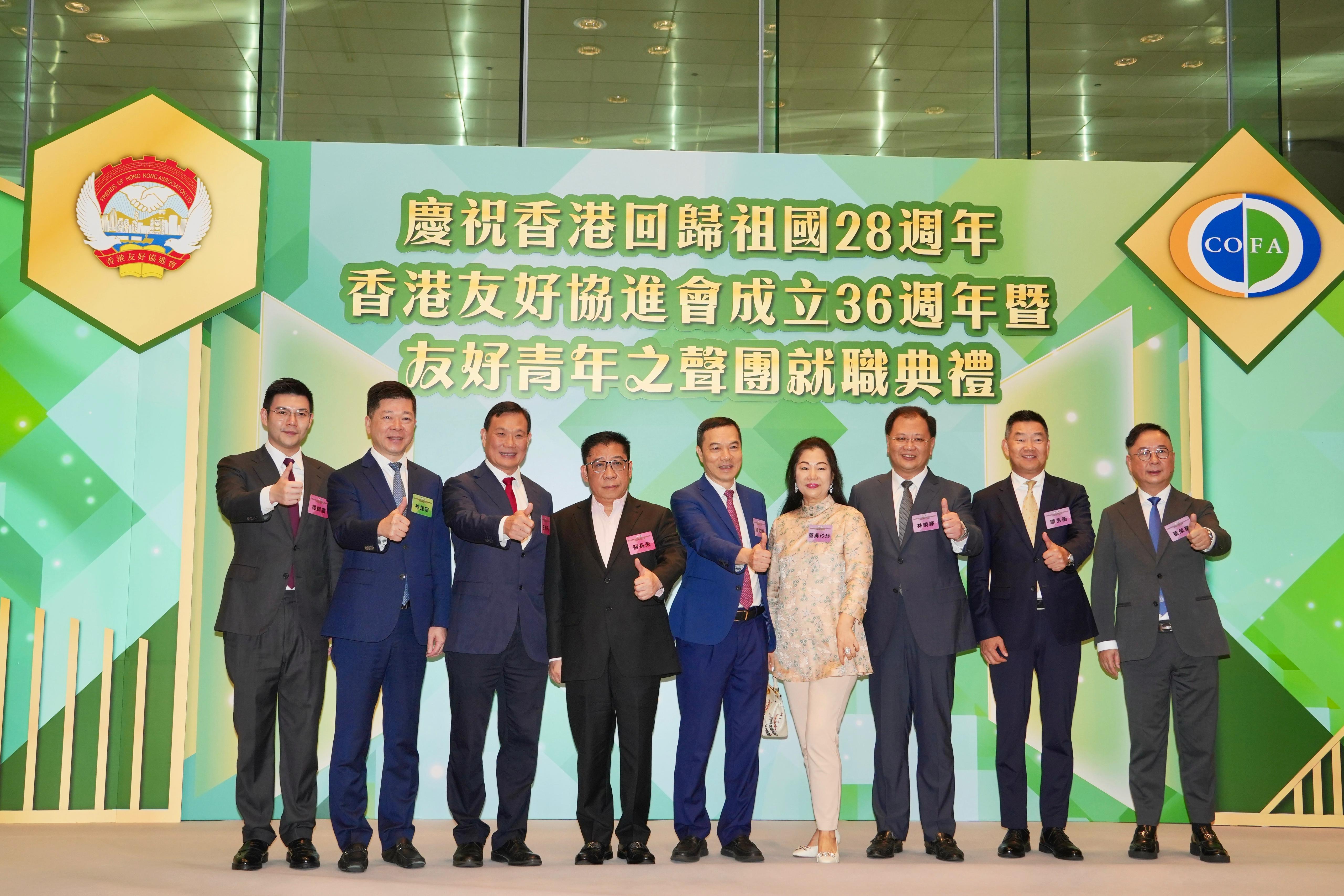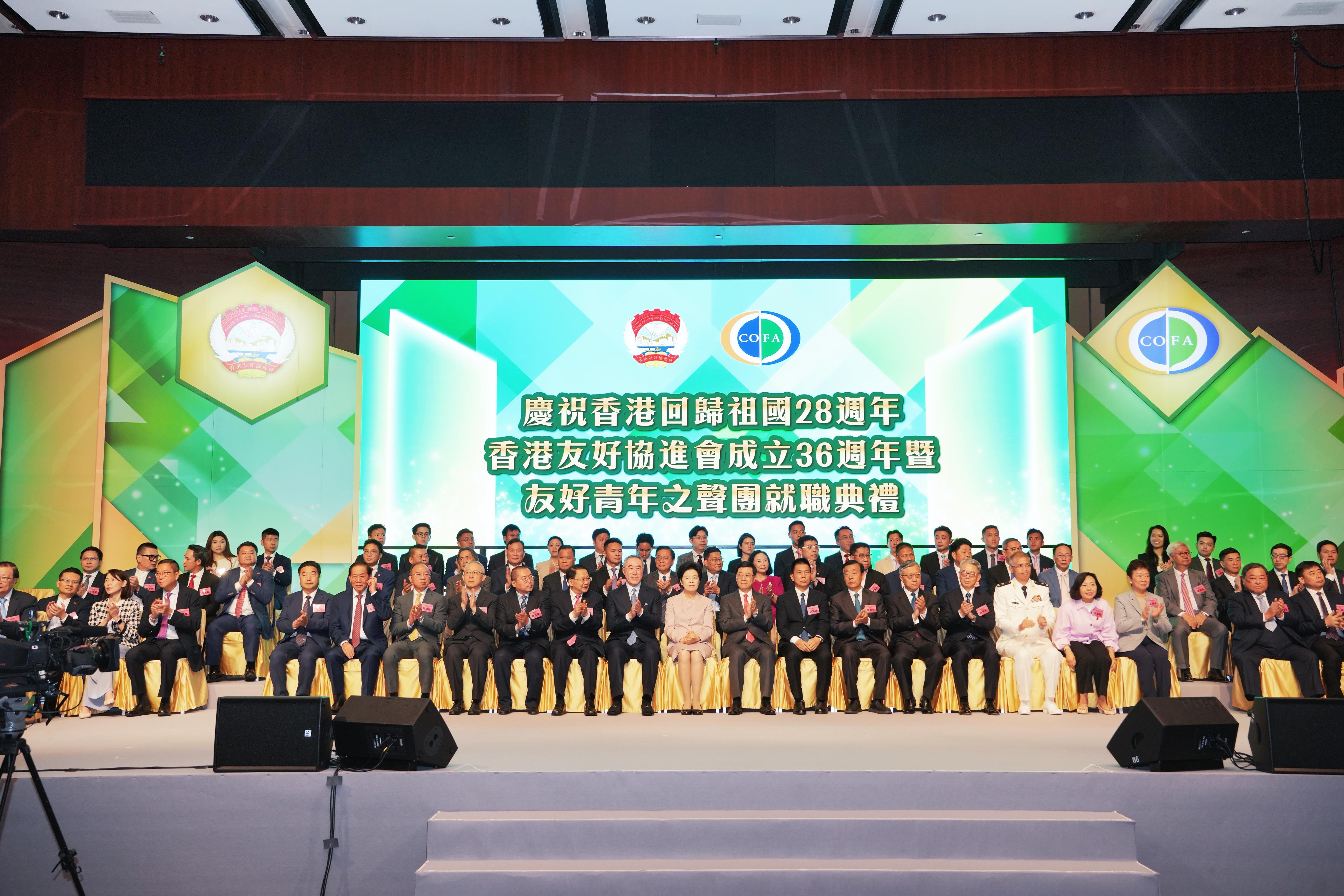 6月25日,香港友好協進會和中華海外聯誼會聯合舉辦「慶祝香港回歸祖國28周年、香港友好協進會成立36周年暨友好青年之聲團就職典禮活動」假灣仔會展舉行,由全國政協副主席咸輝、行政長官李家超、中聯辦副主任尹宗華蒞臨主禮。