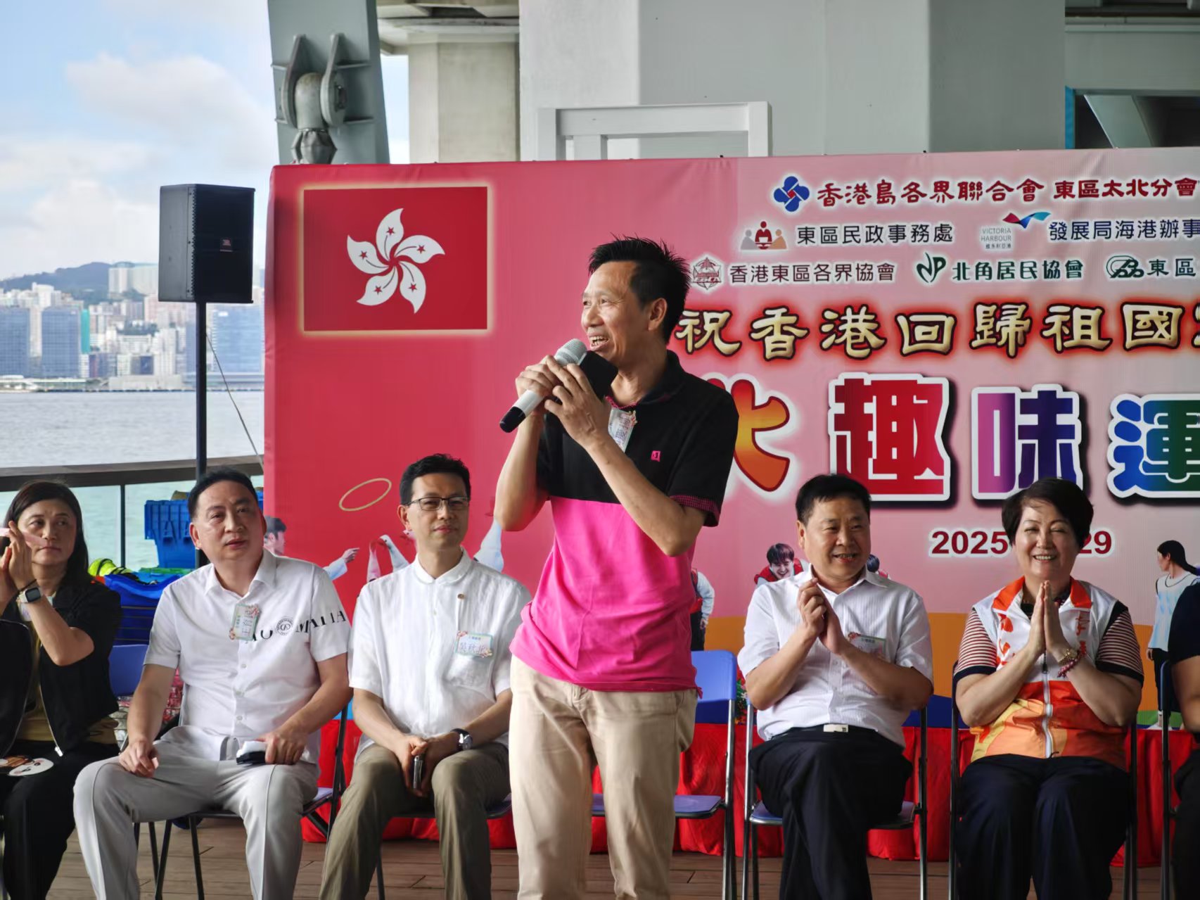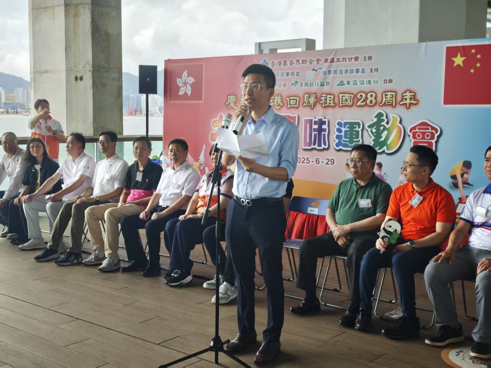 大會並為活動舉行啟動儀式,中聯辦港島工作部副部長尤斌,東區民政事務專員黎旨軒出席主禮。本會理事長蘇長榮;執行會長梁熙;理事長李荊、溫俊文、劉慶揚亦以主禮嘉賓身份出席,並一同為市民送上節慶祝福。隨後,一眾主禮嘉賓更參與到趣味運動之中,實行與民同樂,一同喜迎回歸節慶。