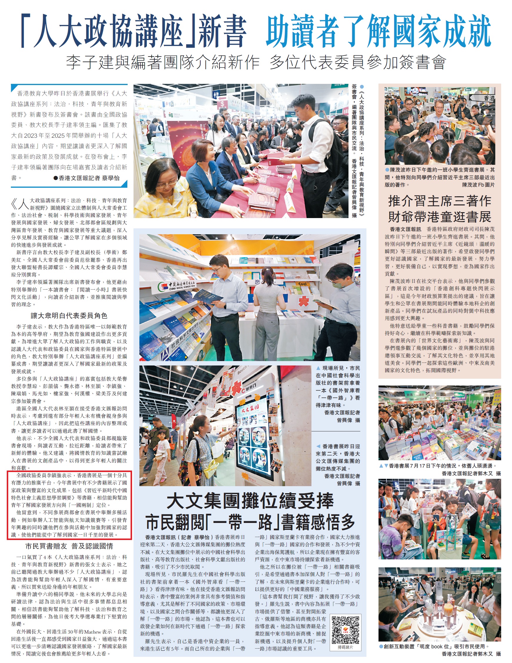 全國政協委員李鎮強表示,香港書展是一個十分具有潛力的推廣平台,今年書展中有不少書籍展示了國家政策與豐富的文化成果,包括《習近平新時代中國特色社會主義思想學習綱要》等書籍,相信能夠幫助青年了解國家發展方向與「一國兩制」定位。