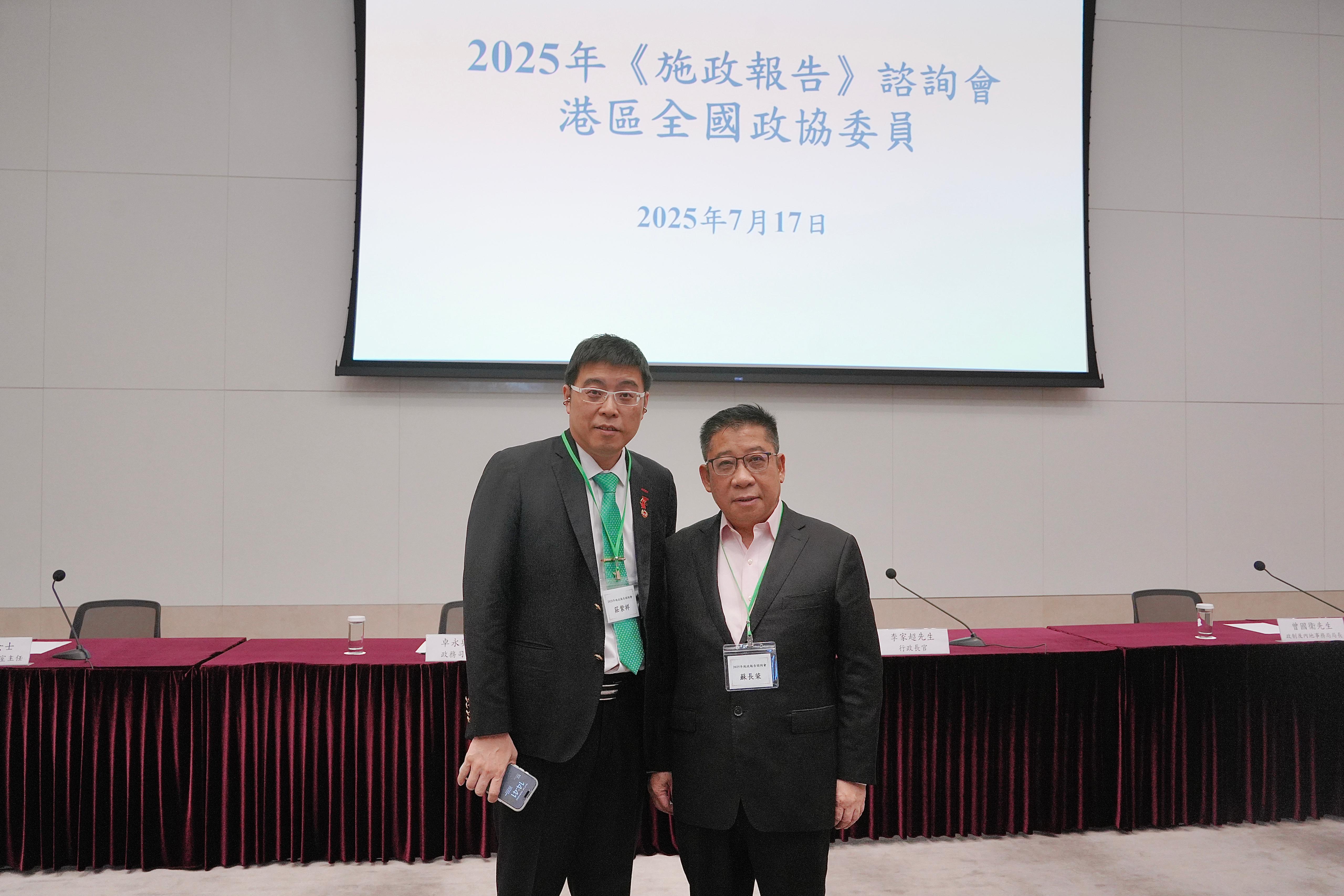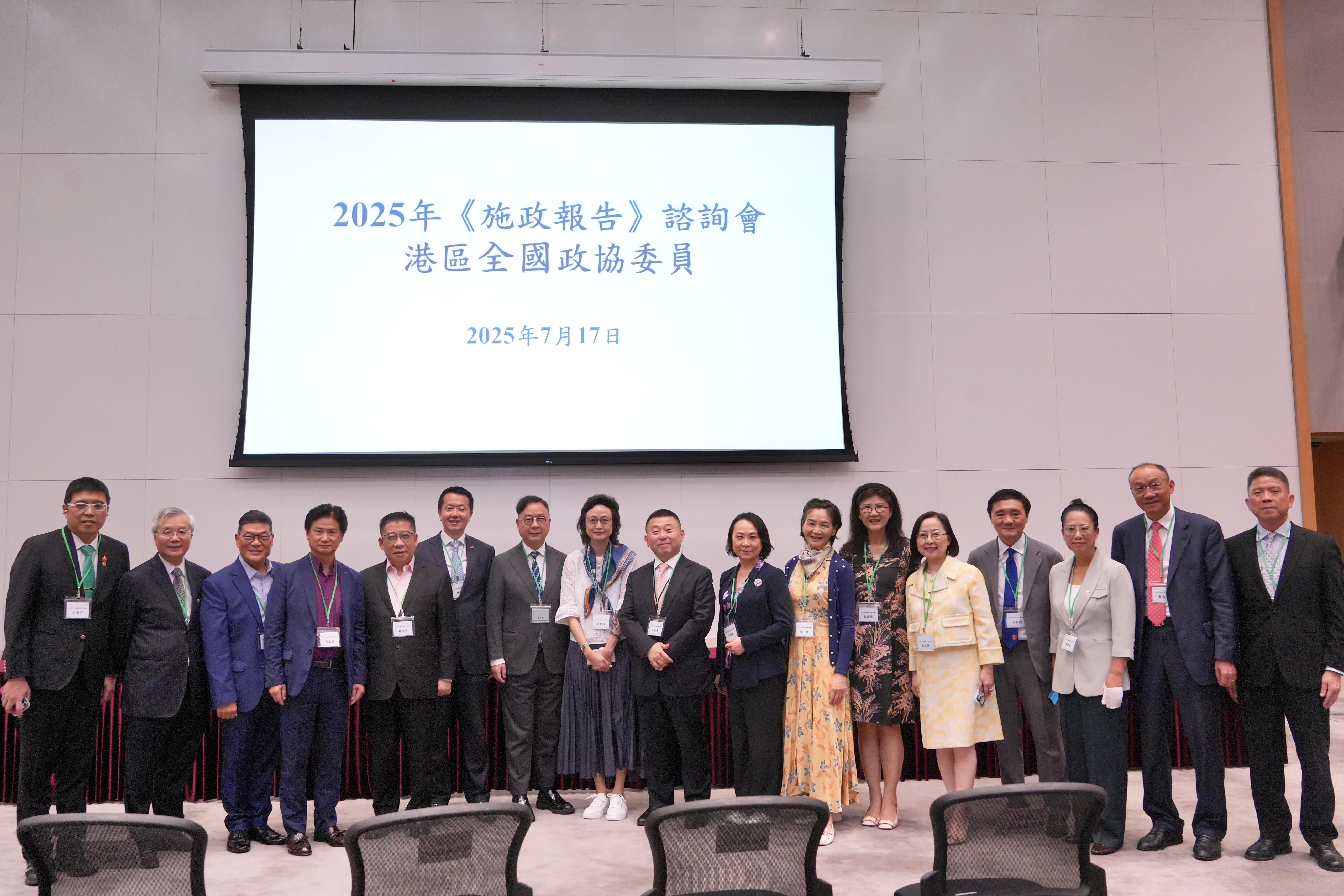 香港特別行政區政府就正就2025年《施政報告》開展諮詢工作,並於7月17日邀請港區全國政協委員與行政長官李家超以及有關官員進行會面,就新一份施政報告的各個範疇提出建議。