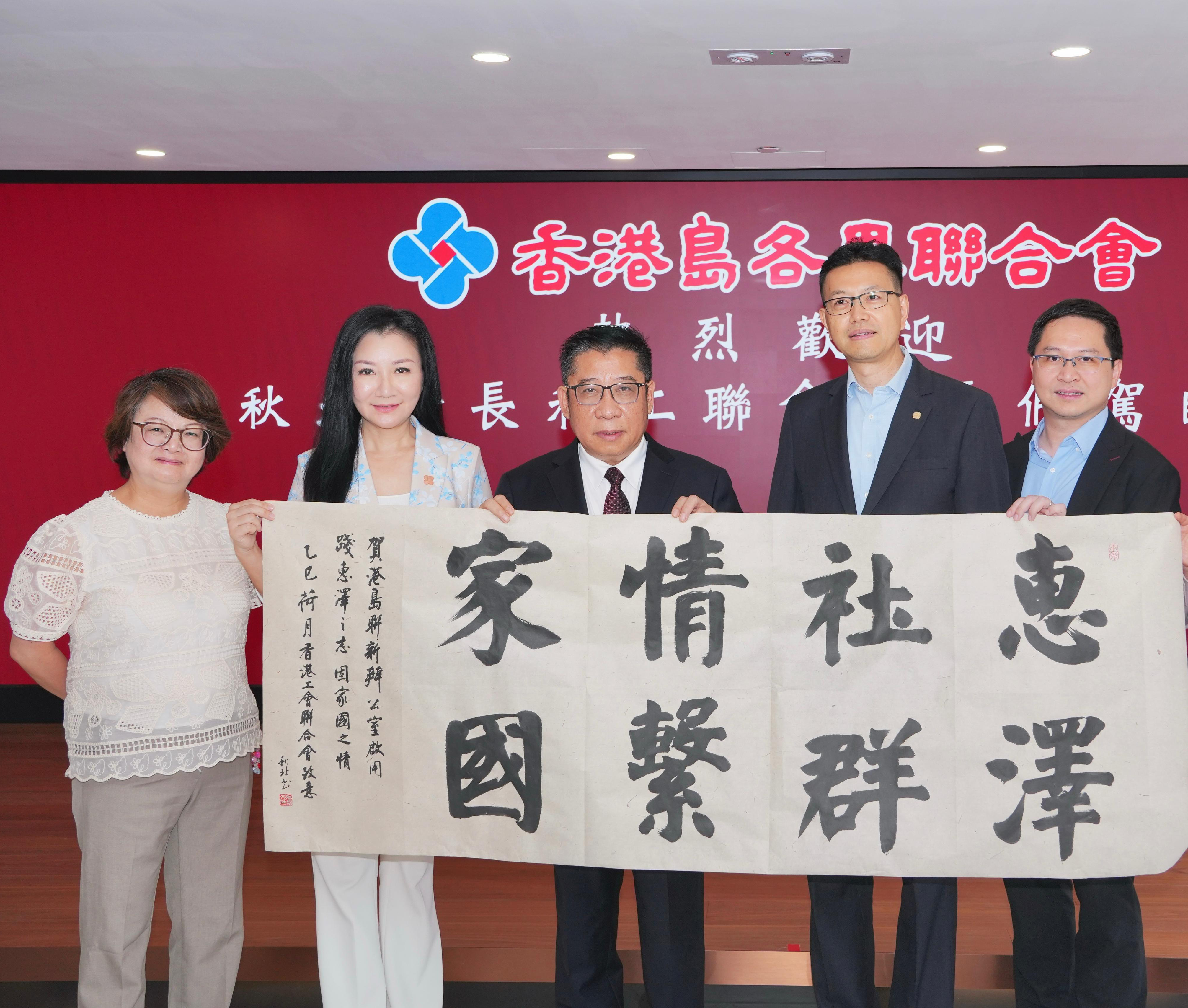 7月28日,工聯會會長吳秋北率領工聯會一眾架構成員及區議員到訪香港島各界聯合會,本會理事長蘇長榮;常務副理事長朱立威(兼秘書長);副理事長金鈴、洪超群、劉珮珊、劉慶揚出席接待。雙方並在港島聯會所舉行座談會,各自匯報近期工作,並冀就地區民生方面的工作尋求進一步合作,強化雙方友好關係。