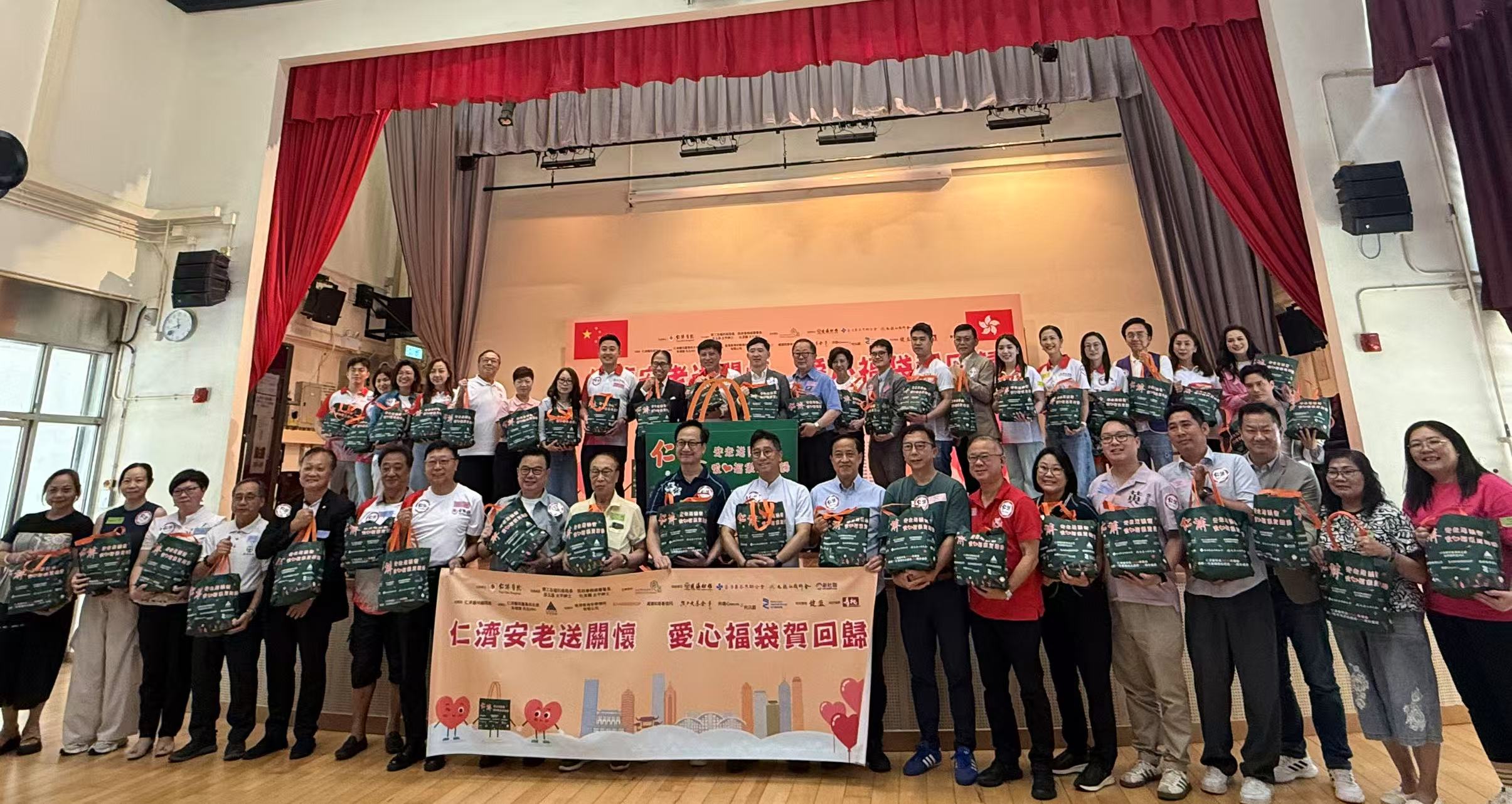 為弘揚尊老愛老傳統,傳遞社會溫暖,今日(8月9日),由仁濟醫院主辦,蓬瀛仙館、香港島各界聯合會、九龍社團聯會、新界社團聯會協辦的「仁濟安老送關懷·愛心福袋賀回歸」大埔區送贈福袋活動於大埔富善社區會堂舉行,政制及內地事務局副局長胡健民,安老事務委員會主席李國棟出席主禮。