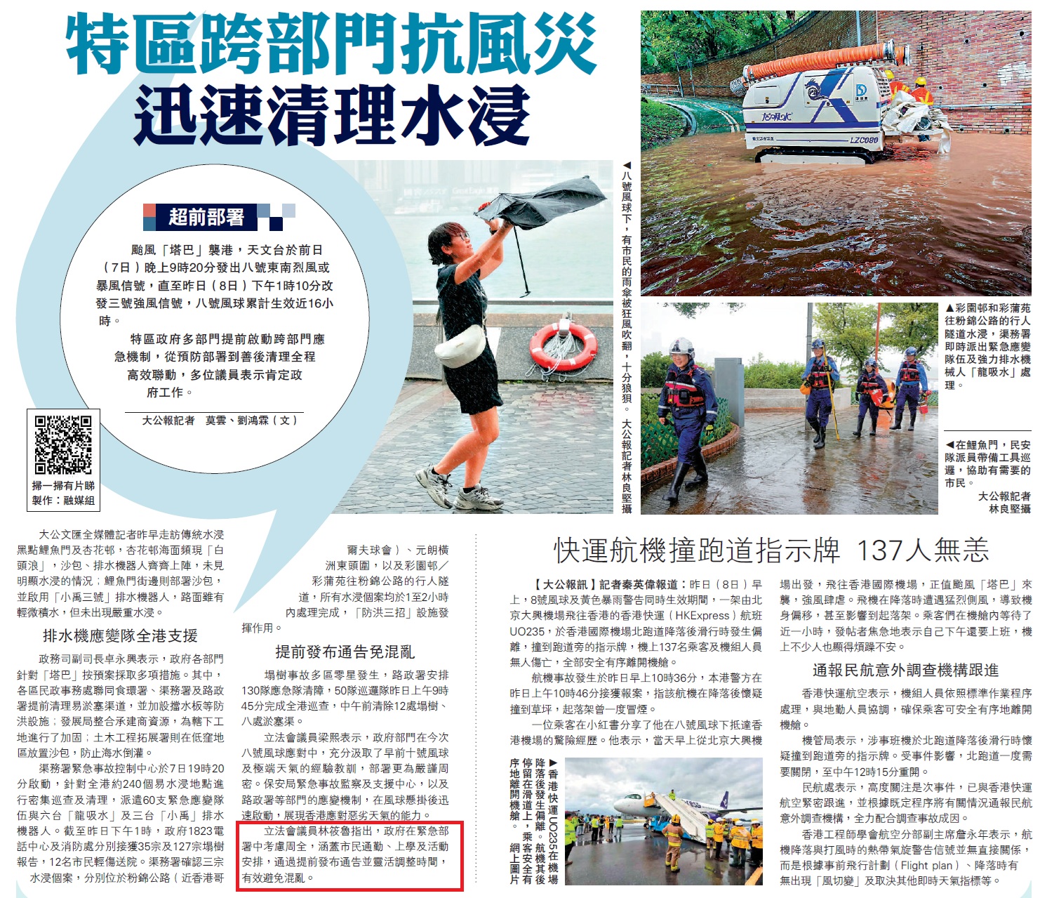 立法會議員林筱魯指出,政府在緊急部署中考慮周全,涵蓋市民通勤、上學及活動安排,通過提前發布通告並靈活調整時間,有效避免混亂。