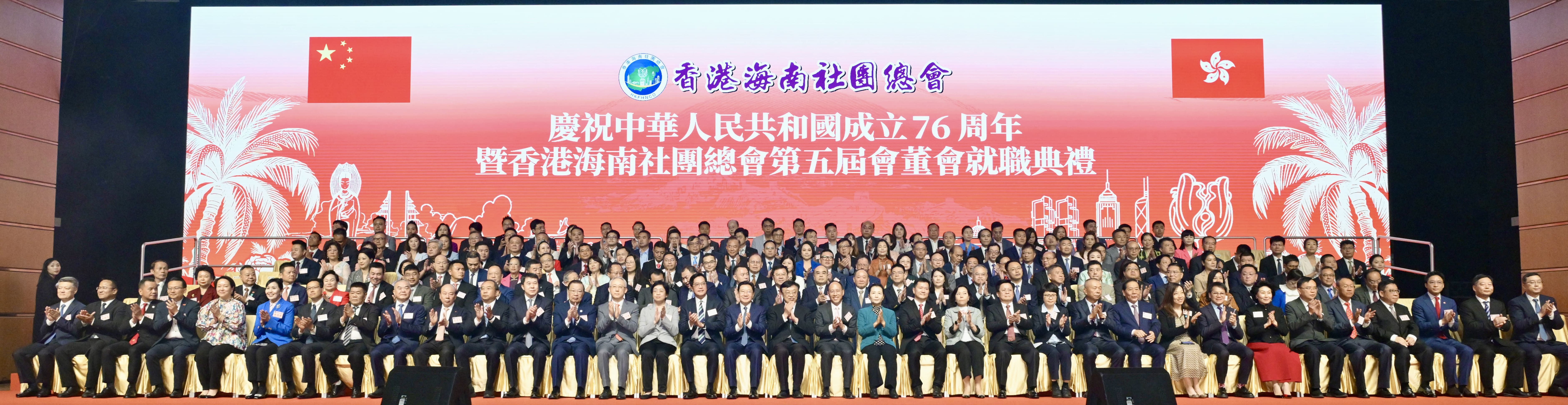 9月10日,香港海南社團總會於香港會議展覽中心舉行「慶祝中華人民共和國成立76周年暨香港海南社團總會第五屆董事會就職典禮」活動,海南省委書記馮飛;中央政府駐港聯絡辦公室主任周霽;香港特區政府財政司副司長黃偉綸;中央統戰部三局局長王萍,以及一眾特區政府、中央駐港機構代表出席主禮,與來自香港各界的瓊籍鄉親、社團代表共同見證香港海南社團總會新一屆董事會就職。