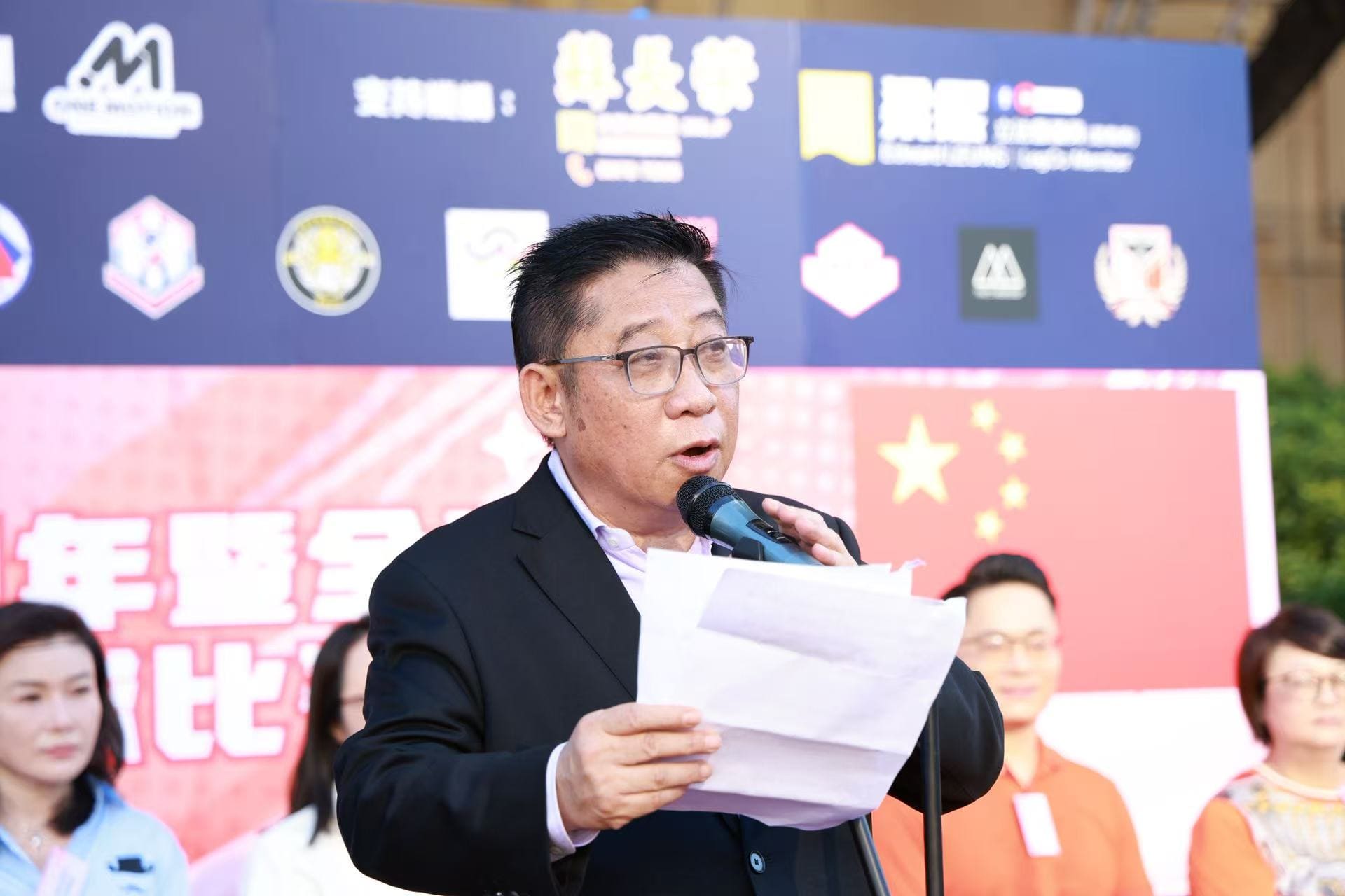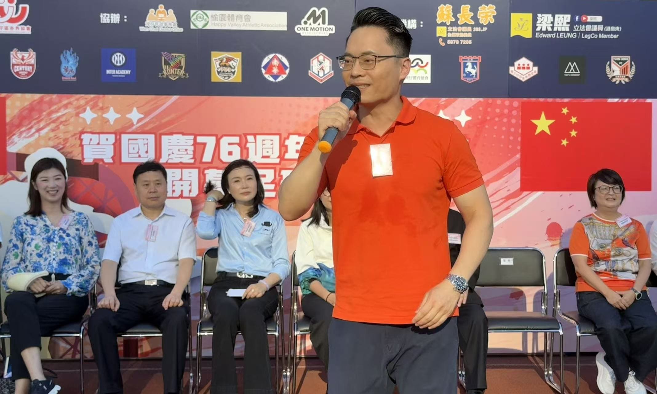 本會理事長蘇長荣以支持機構身份應邀出席主禮並致辭,他提到全運會作為國家最高規格的綜合體育盛事,這次由香港參與共同承辦,榮耀與責任並存,期望廣大市民能夠積極參與,響應全民運動,一同為香港運動健兒加油打氣。