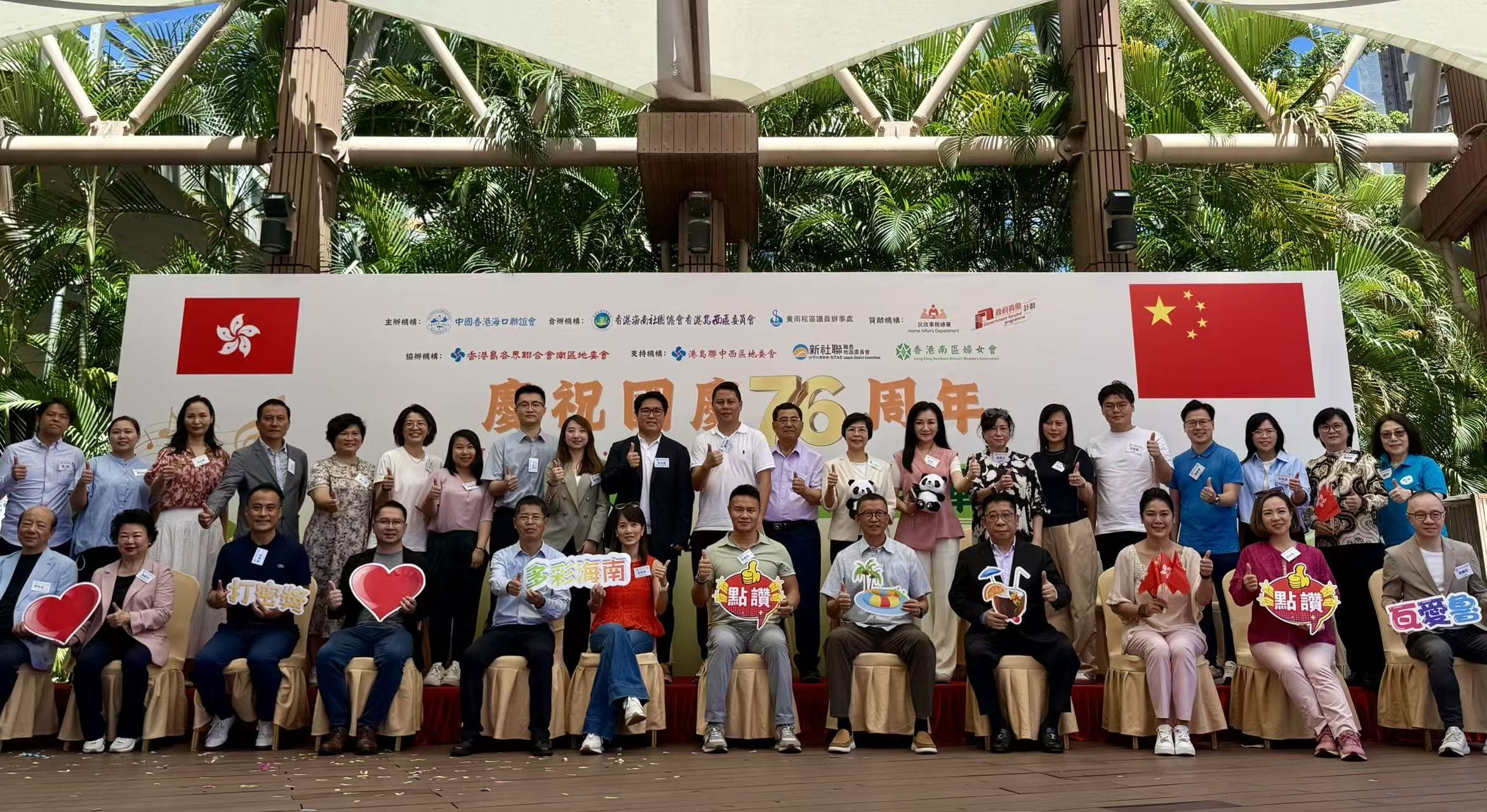 為傳揚海南非遺文化,9月14日,由中國香港海口聯誼會主辦、香港島各界聯合會南區地委會協辦,並由港島聯中西區地委會等單位支持舉辦的「慶祝國慶76周年 - 『海南非遺體驗·親子同樂』海南文化親子嘉年華」在香港仔海濱公園舉辦,南區民政事務專員張佩珊,中聯辦港島工作部副部長楊成偉等出席主禮。