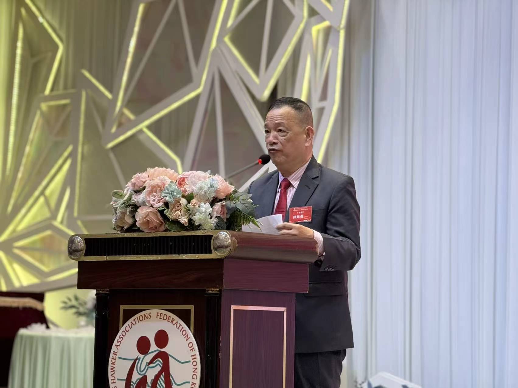 本會副理事長陳錦榮以港九新界販商社團聯合會主席身份致辭時提到,香港販商行業作為香港社會的重要基層力量,多年來積極參與社會建設。未來,業界期待與社會各界攜手進一步優化營商環境,完善相關政策,把握新時代發展機遇。作為堅定的愛國愛港團體,港九販商社團聯合會將一如既往支持香港特區政府依法施政,共同推動香港繁榮穩定,為實現更美好的社會貢獻力量。