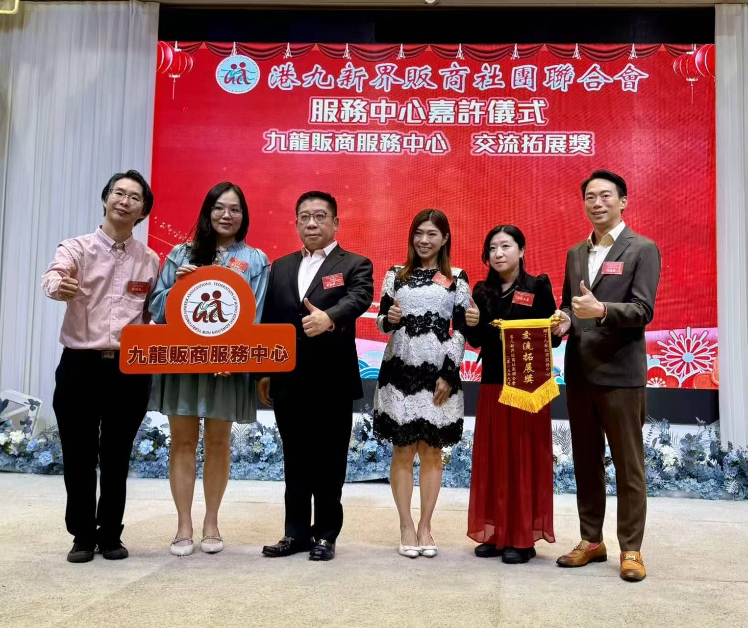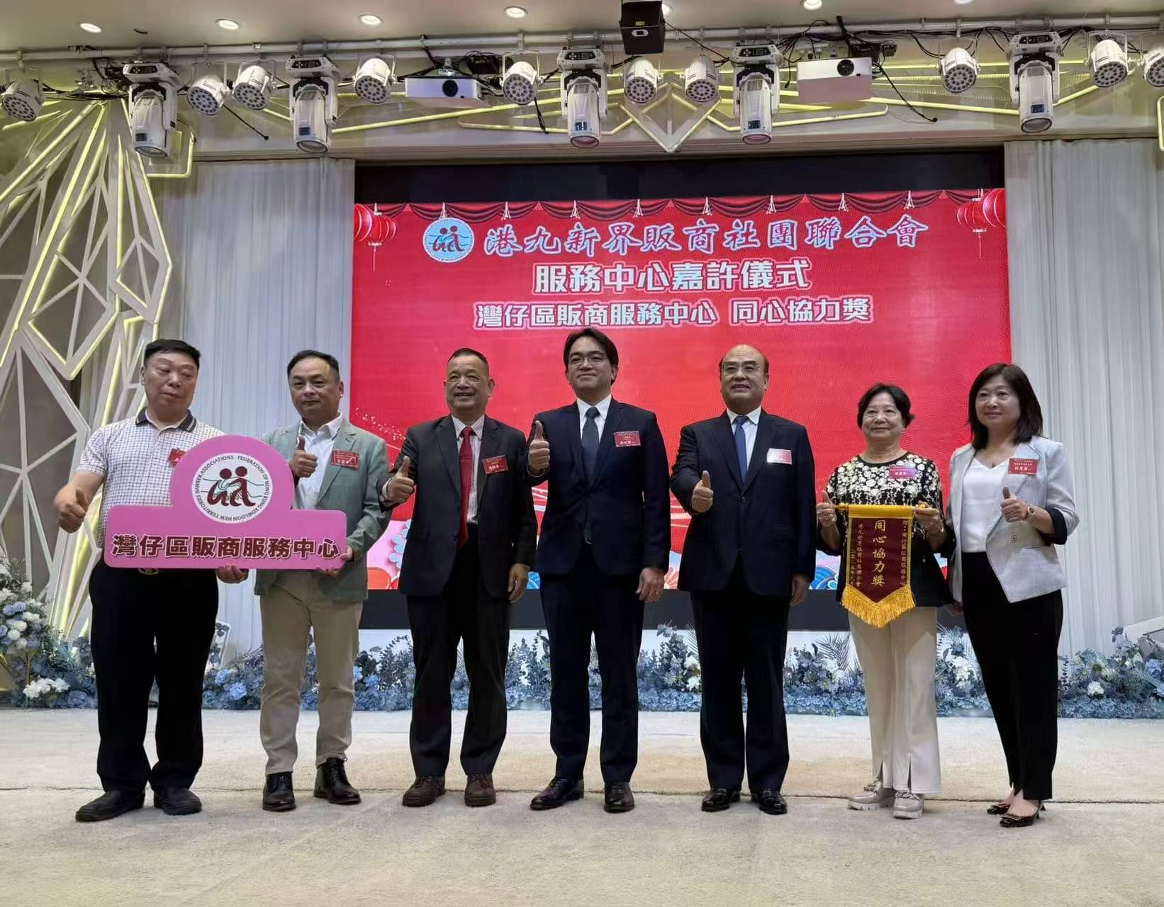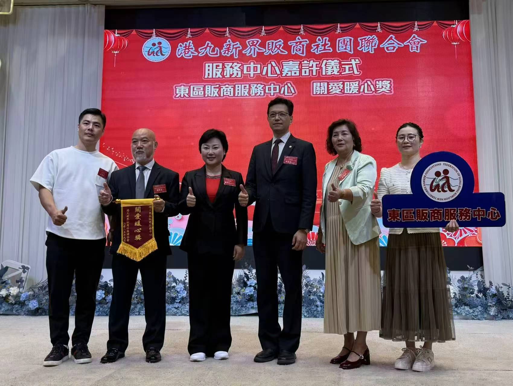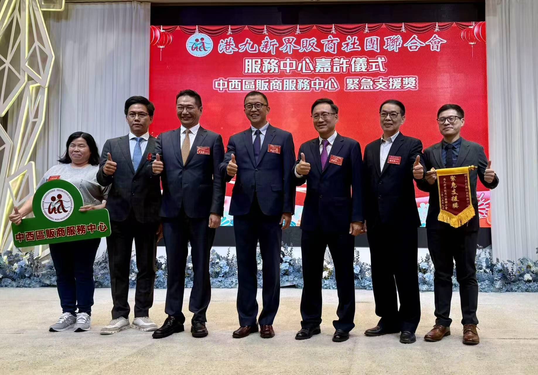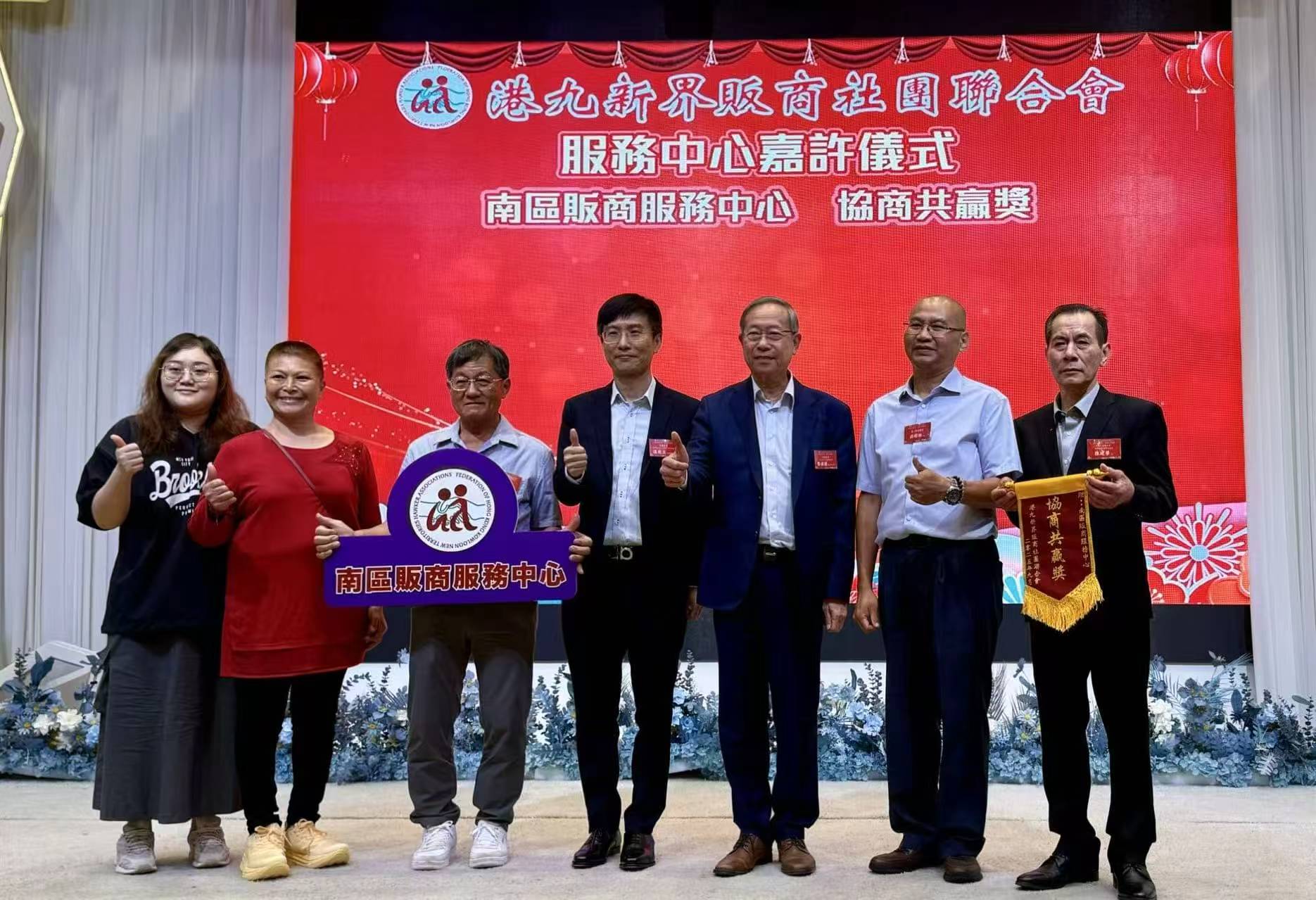 現場還舉行了隆重的嘉許儀式。本會副理事長陳錦榮、程莉元及溫俊文,以港九販商社團聯合會首長身份陪同一眾主席嘉賓,包括中聯辦港島工作部部長薛惠君、副部長楊成偉、以及本會理事長蘇長荣等,一同向多位表現卓越的販商同仁頒發錦旗,以表彰其傑出貢獻和服務精神。現場氣氛熱烈,掌聲不斷,將活動推向高潮。