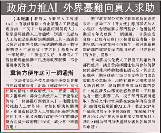 https://orientaldaily.on.cc/content/%E8%A6%81%E8%81%9E%E6%B8%AF%E8%81%9E/odn-20250923-0923_00176_207/%E6%94%BF%E5%BA%9C%E5%8A%9B%E6%8E%A8AI--%E5%A4%96%E7%95%8C%E6%86%82%E9%9B%A3%E5%90%91%E7%9C%9F%E4%BA%BA%E6%B1%82%E5%8A%A9