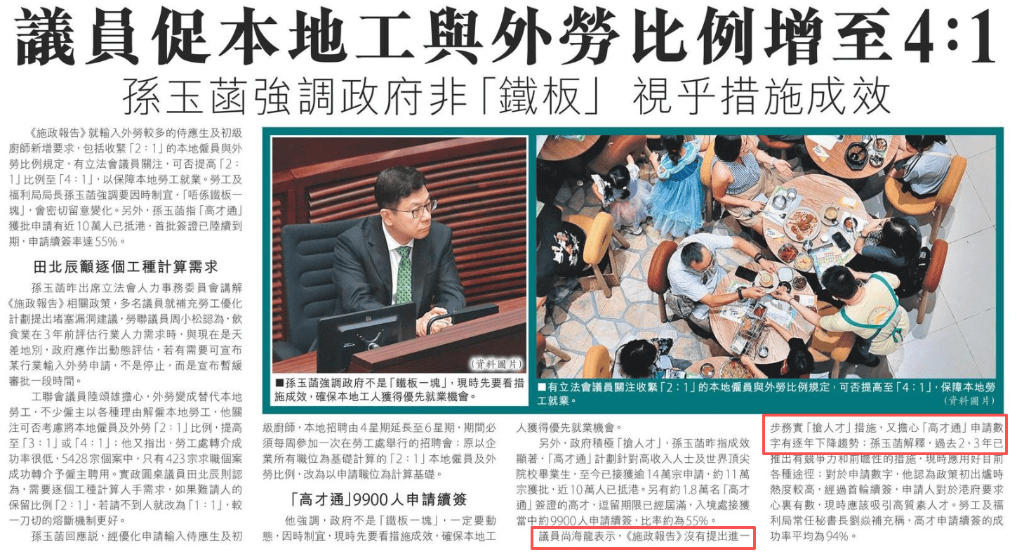 信報財經新聞:https://www.hkej.com/dailynews/politics/article/4202101/%E8%AD%B0%E5%93%A1%E4%BF%83%E6%9C%AC%E5%9C%B0%E5%B7%A5%E8%88%87%E5%A4%96%E5%8B%9E%E6%AF%94%E4%BE%8B%E5%A2%9E%E8%87%B34%EF%BC%9A1++