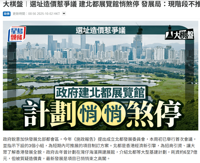 https://www.stheadline.com/politics/3504782/%E5%A4%A7%E6%A3%8B%E7%9B%A4%E9%81%B8%E5%9D%80%E9%80%A0%E5%83%B9%E6%83%B9%E7%88%AD%E8%AD%B0-%E5%BB%BA%E5%8C%97%E9%83%BD%E5%B1%95%E8%A6%BD%E9%A4%A8%E6%82%84%E7%85%9E%E5%81%9C-%E7%99%BC%E5%B1%95%E5%B1%80%E7%8F%BE%E9%9A%8E%E6%AE%B5%E4%B8%8D%E6%8E%A8%E8%A1%8C%E6%9C%89%E9%97%9C%E9%A0%85%E7%9B%AE
