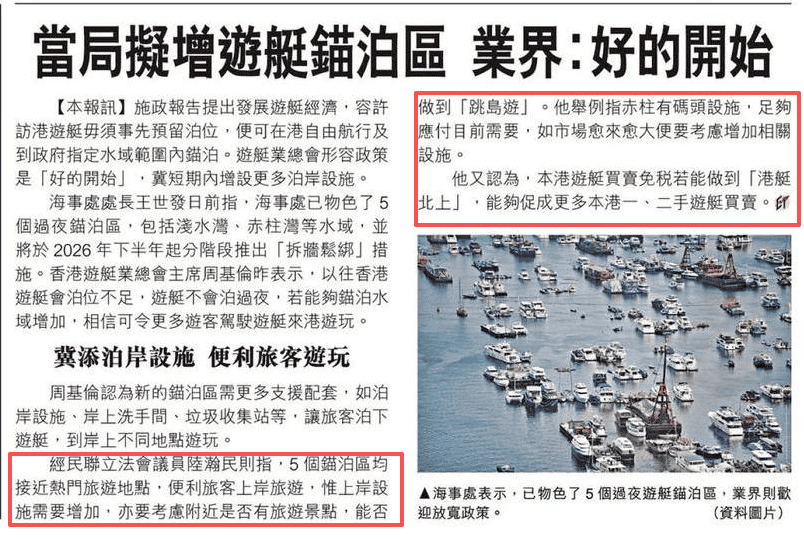 他又認為,本港遊艇買賣免稅若能做到「港艇北上」,能夠促成更多本港一、二手遊艇買賣。