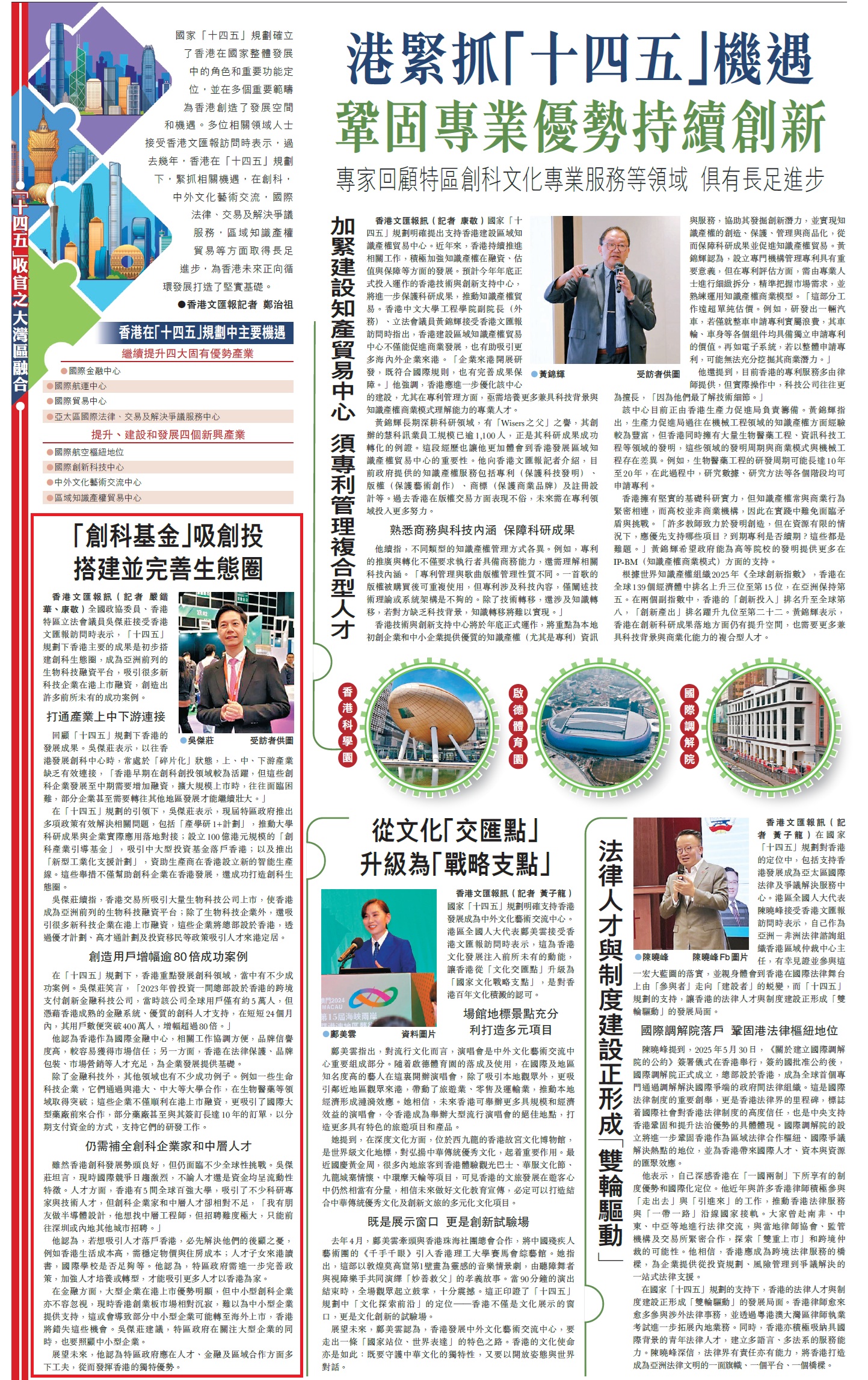 全國政協委員、香港特區立法會議員吳傑莊接受香港文匯報訪問時表示,「十四五」規劃下香港主要的成果是初步搭建創科生態圈,成為亞洲前列的生物科技融資平台,吸引很多新科技企業在港上市融資,創造出許多前所未有的成功案例。