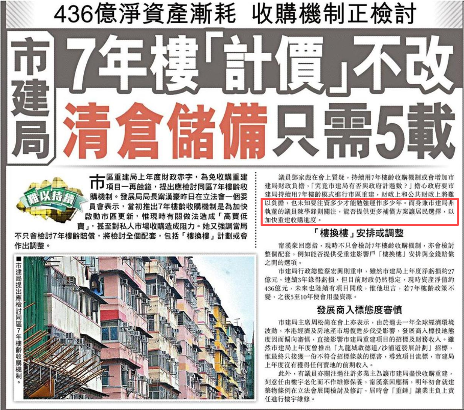 東方日報:https://orientaldaily.on.cc/content/%E8%A6%81%E8%81%9E%E6%B8%AF%E8%81%9E/odn-20251014-1014_00176_021/%E5%B8%82%E5%BB%BA%E5%B1%807%E5%B9%B4%E6%A8%93%E3%80%8C%E8%A8%88%E5%83%B9%E3%80%8D%E4%B8%8D%E6%94%B9--%E6%B8%85%E5%80%89%E5%84%B2%E5%82%99%E5%8F%AA%E9%9C%805%E8%BC%89