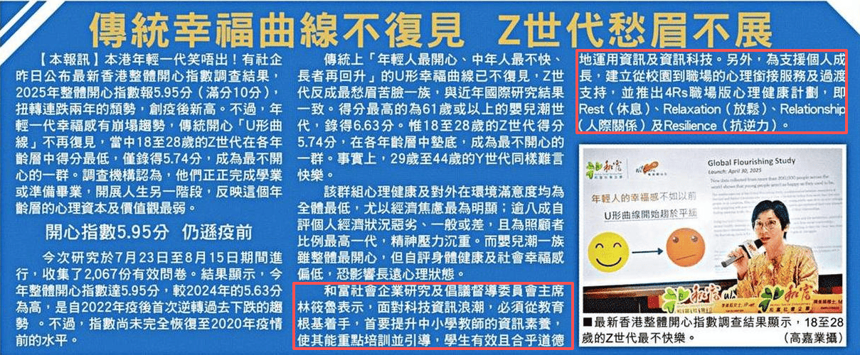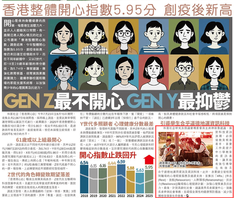 am730:https://www.am730.com.hk/%E6%9C%AC%E5%9C%B0/%E9%A6%99%E6%B8%AF%E6%95%B4%E9%AB%94%E9%96%8B%E5%BF%83%E6%8C%87%E6%95%B85.95%E5%88%86-%E5%89%B5%E7%96%AB%E5%BE%8C%E6%96%B0%E9%AB%98-gen-z%E6%9C%80%E4%B8%8D%E9%96%8B%E5%BF%83-gen-y%E6%9C%80%E6%8A%91%E9%AC%B1/608634