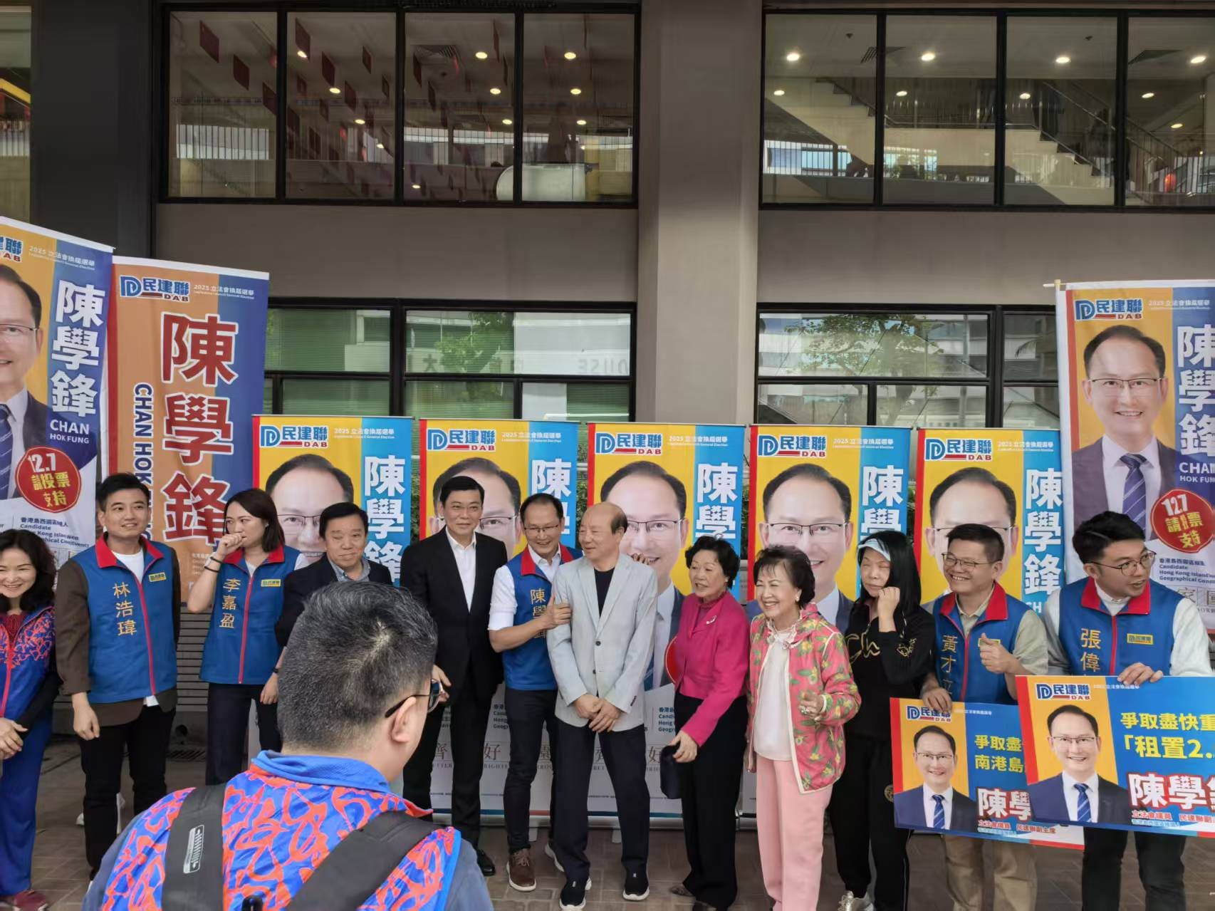 10月24日,立法會議員、民建聯副主席陳學鋒聯到上環海港政府大樓,報名參選新一屆立法會香港島西地區直選,爭取連任。本會會長薛博然;副理事長陳南坡以及一眾政黨及地區代表親身出席支持。