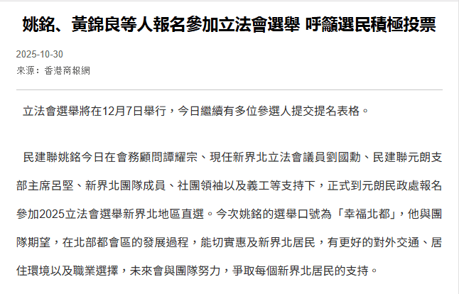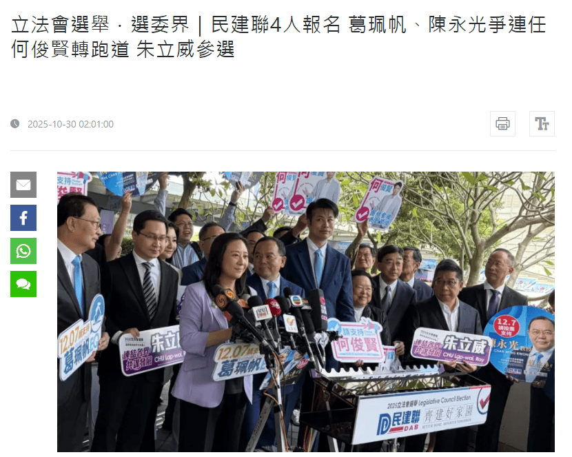 星島頭條:https://www.singtaousa.com/2025-10-30/%E7%AB%8B%E6%B3%95%E6%9C%83%E9%81%B8%E8%88%89%EF%BC%8E%E9%81%B8%E5%A7%94%E7%95%8C%EF%BD%9C%E6%B0%91%E5%BB%BA%E8%81%AF4%E4%BA%BA%E5%A0%B1%E5%90%8D-%E8%91%9B%E7%8F%AE%E5%B8%86%E3%80%81%E9%99%B3/5366105