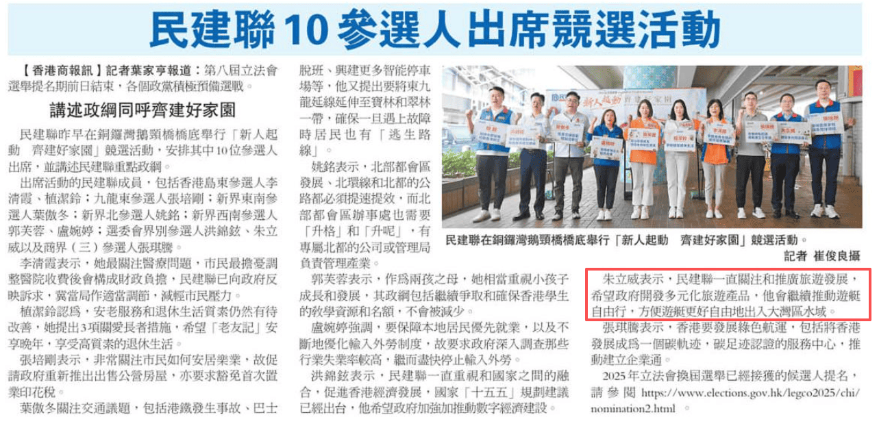 朱立威表示,民建聯一直關注和推廣旅遊發展,希望政府開發多元化旅遊產品,他會繼續推動遊艇自由行,方便遊艇更好自由地出入大灣區水域。