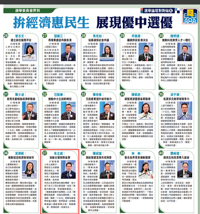 37號候選人朱立威:主張對接國家「十五五」規劃,推動香港融入國家發展大局;推動旅遊業升級轉型,打造大灣區「一城多站」旅遊產品,推動粵港澳遊艇自由行;搭建弱勢群體支援平台,強化長者、病患、照顧者等弱勢群體的配套服務。