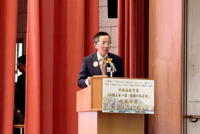 本會副理事長丁柏希以香港區家長教師會聯會主席身份代表大會致辭。他向所有參與比賽的同學致以衷心謝忱,並對獲獎同學給予熱烈祝賀。並籍此呼籲教育界人士作為學子成長路上的領航者,理應以身作則,以身教作為榜樣,積極參與社會事務及建設工作,共同擔當香港良政善治的參與者及推動者。