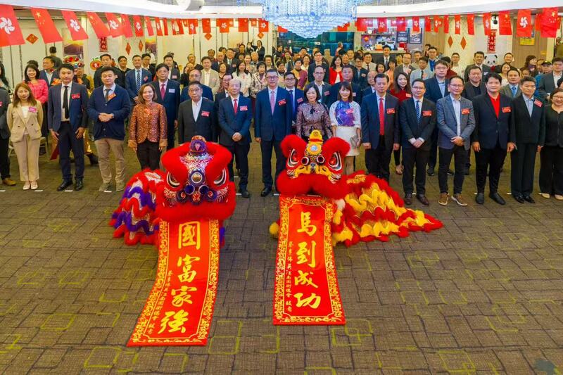本會理事長蘇長荣;常務副理事長兼秘書長朱立威;副理事長陳南坡、彭兆基亦應邀出席主禮,並參與切金豬及祝酒儀式。另陳南坡副理事長亦以香港南區各界聯會理事長身份代表大會致辭,為在場人士送上春節祝福。