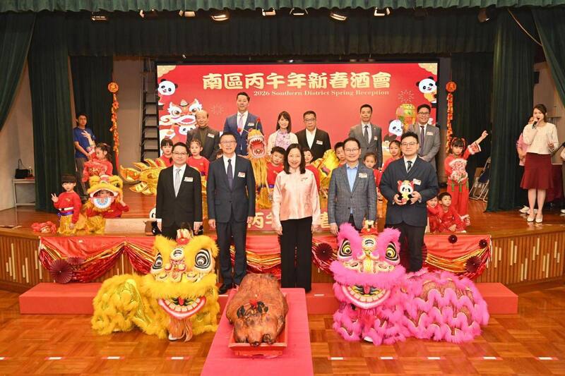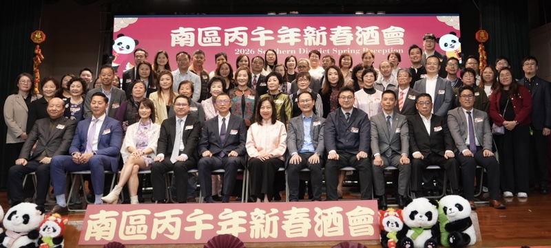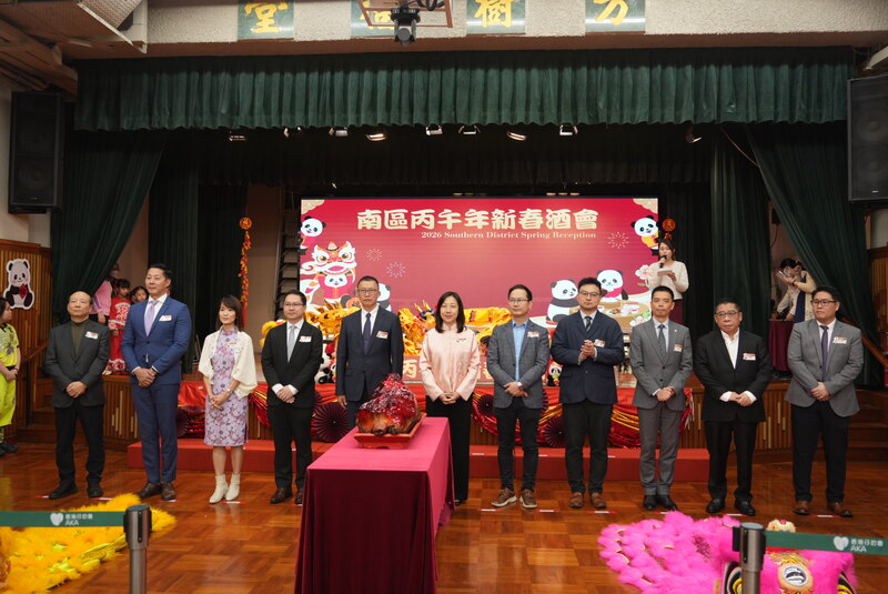 由南區民政事務處聯同南區區議會合辦的「南區丙午年新春酒會」於2月26日圓滿舉行,中聯辦港島工作部副部長楊成偉、民政事務總署署長杜潔麗等蒞臨主禮,與一眾南區區議員、政府部門代表、社區賢達、地區領袖向香港市民拜年。
