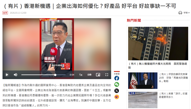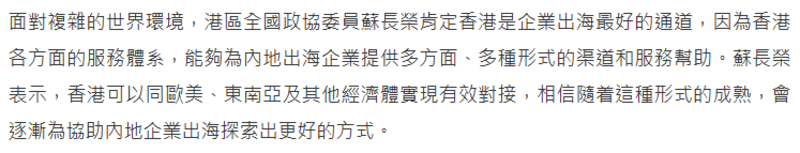 蘇長荣 | 點新聞 | 香港新機遇:企業出海如何優化?好產品 好平台 好故事缺一不可