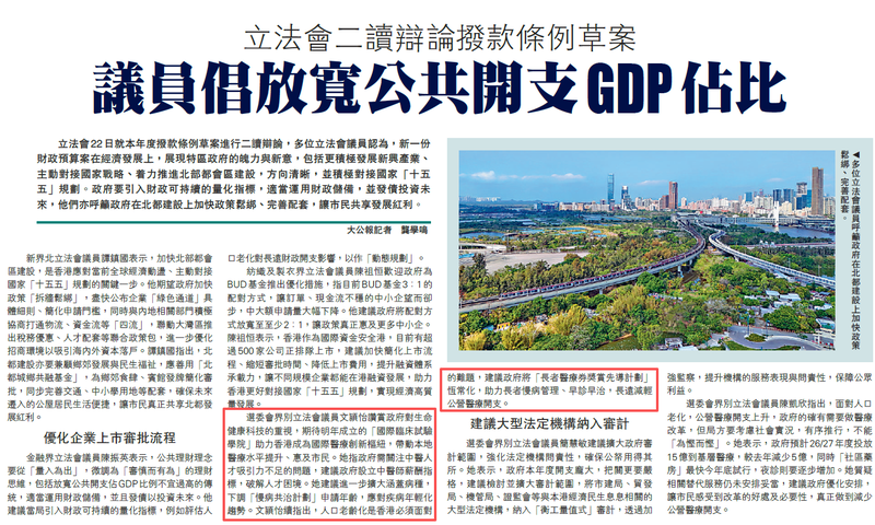 選委會界別立法會議員文頴怡讚賞政府對生命健康科技的重視,期待明年成立的「國際臨床試驗學院」助力香港成為國際醫療創新樞紐,帶動本地醫療水平提升、惠及市民。她指政府需關注中醫人才吸引力不足的問題,建議政府設立中醫師薪酬指標,破解人才困境。她建議進一步擴大涵蓋病種,下調「慢病共治計劃」申請年齡,應對疾病年輕化趨勢。文頴怡續指出,人口老齡化是香港必須面對的難題,建議政府將「長者醫療券獎賞先導計劃」恆常化,助力長者慢病管理、早診早治,長遠減輕公營醫療開支。