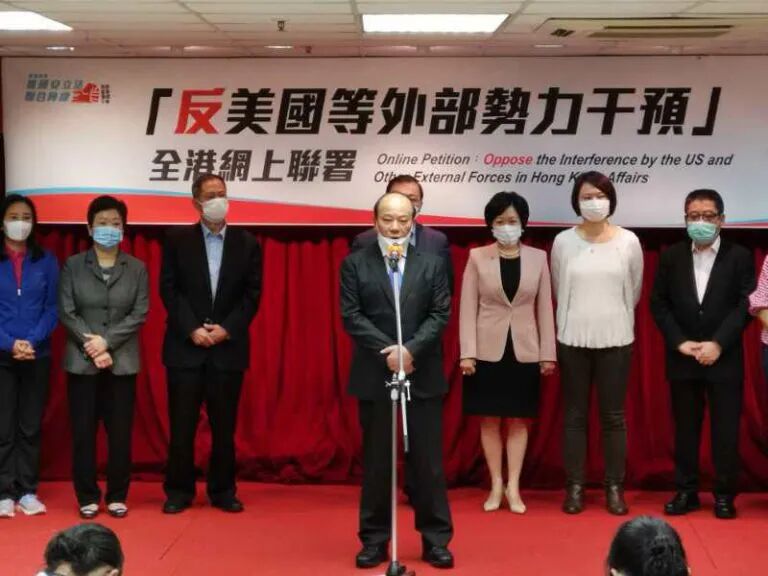 2020年6月15日,「反美國等外部勢力干預」全港網上聯署啟動禮於本會所舉行,出席嘉賓包括:蘇長榮、譚耀宗、葉劉淑儀、李慧琼、吳秋北、陳勇、王惠貞、龔俊龍、吳換炎、蔣麗雲、葛珮帆、周浩鼎、麥美娟、郭偉強等,譚耀宗在會上宣佈「 反美國等外部勢力干預」網上聯署活動正式啟動,本次啟動禮介紹了網上聯署的目的、意義及其他的活動安排。在啟動禮上,很多嘉賓表達了反對美國等外部勢力干預香港的意見,他們大力呼籲市民積極參與網上簽名活動,表達對美國等外部勢力干預香港的不滿和憤怒。https://joint-petition.signforhk2020.com/